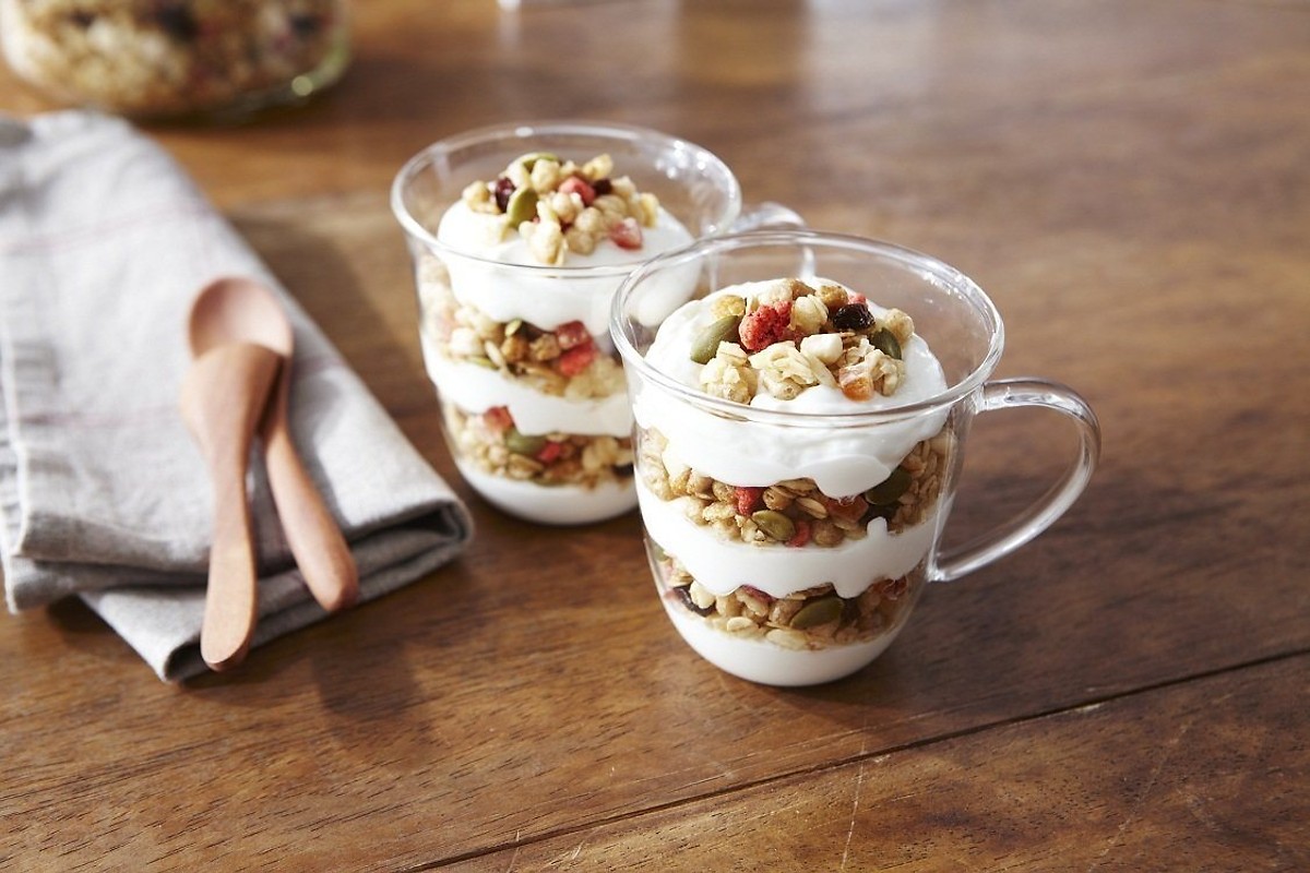 4. 4. Ngũ cốc màu xanh thành phần gồm: Xoài, chanh dây, dừa, đu đủ, hạt bí đỏ, yến mạch, lúa mạch, ..