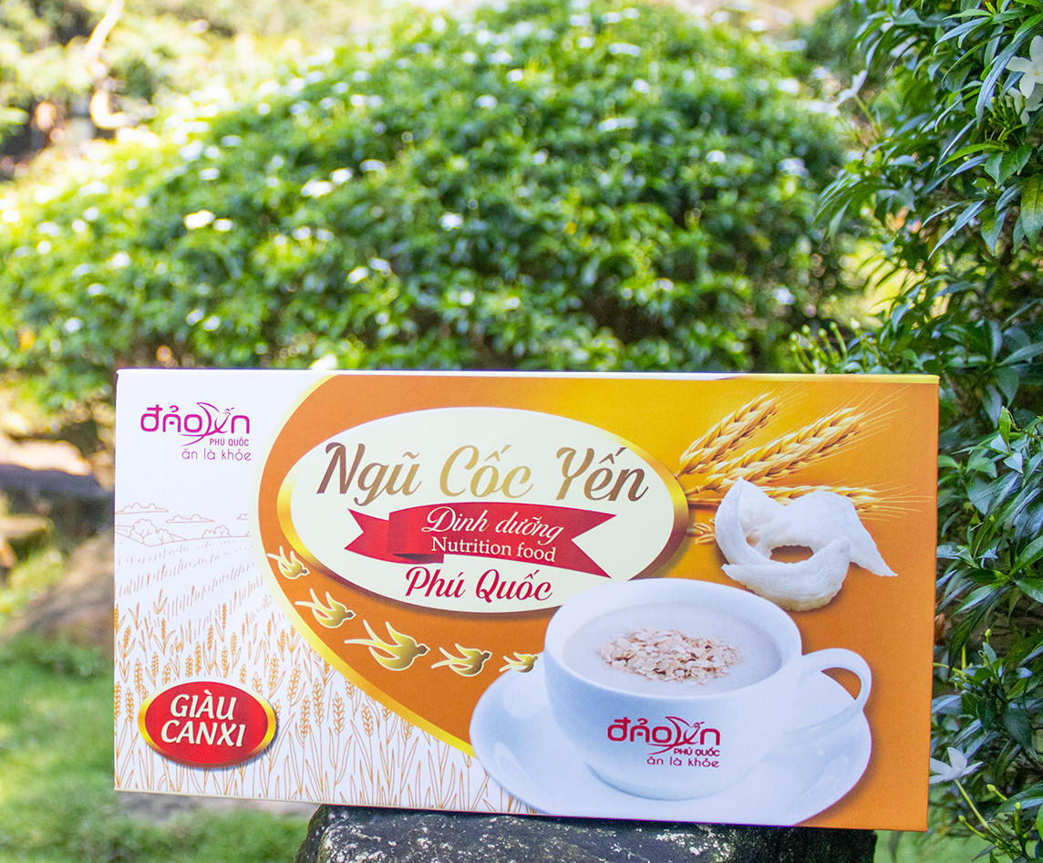 - Ngũ cốc yến dinh dưỡng phú quốc là thực phẩm dinh dưỡng tiện lợi, được kết hợp đặc biệt theo tỷ lệ vàng từ Bột Ngũ Cốc và Yến Sào. Sản phẩm cung cấp những chất dinh dưỡng cần thiết, giúp bạn nâng cao sức khỏe mỗi ngày. Kết hợp giữa bột ngũ cốc và bột yến sào