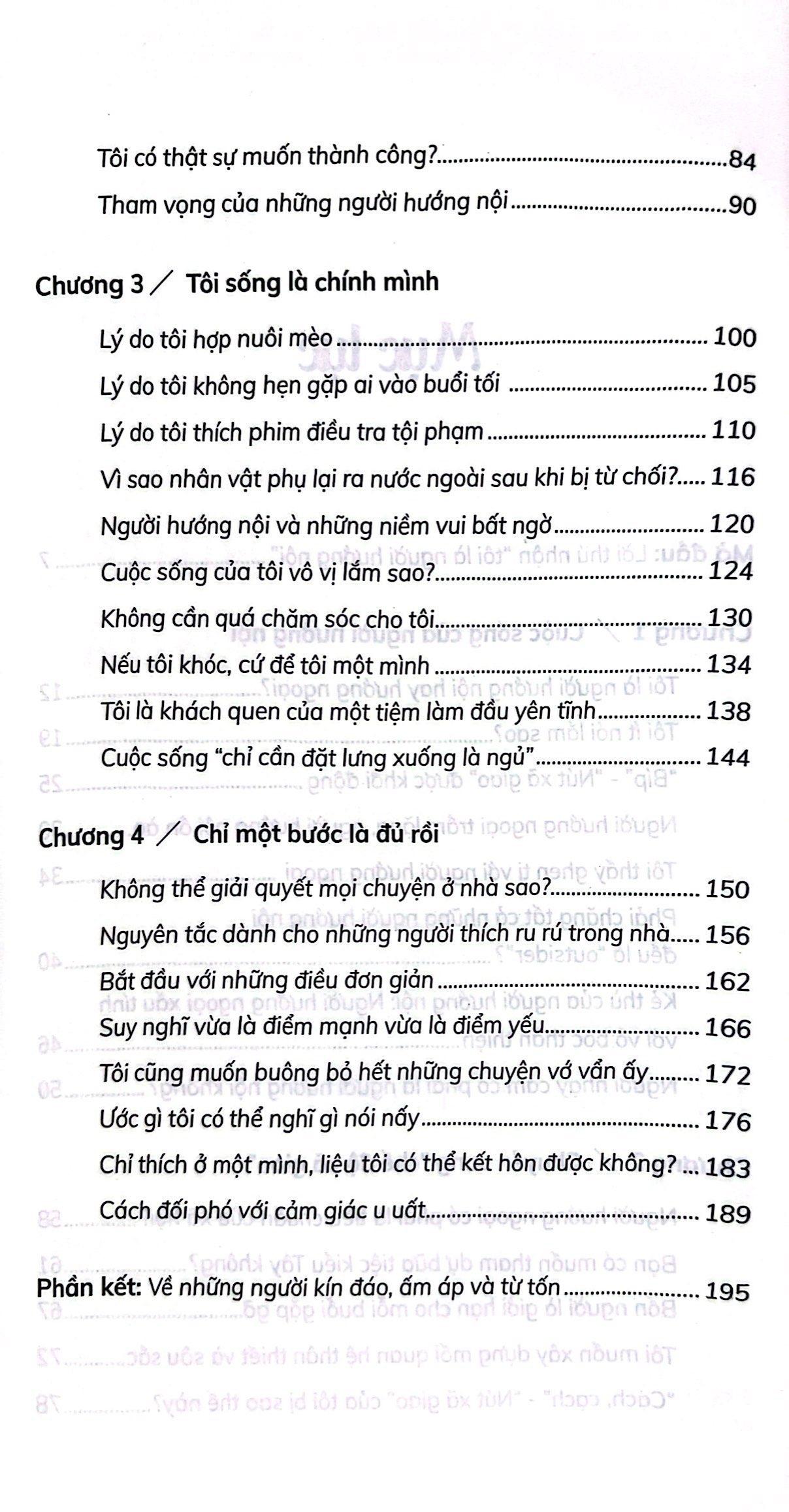Bạn không cần phủ nhận sự nhạy cảm vốn có của bản thân, cũng chẳng cần ghen tị với những người hướng ngoại có vẻ ngoài hào nhoáng, hãy cứ giữ nguyên tốc độ, nhịp điệu và phương pháp giao tiếp của riêng mình. Có thể sẽ hơi chậm một chút, hơi vụng về một chút, hơi cô đơn một chút, thế nhưng bạn sẽ nhận ra, sống là chính mình đem lại sự tự do và niềm hạnh phúc bạn mà chưa từng mường tượng.
