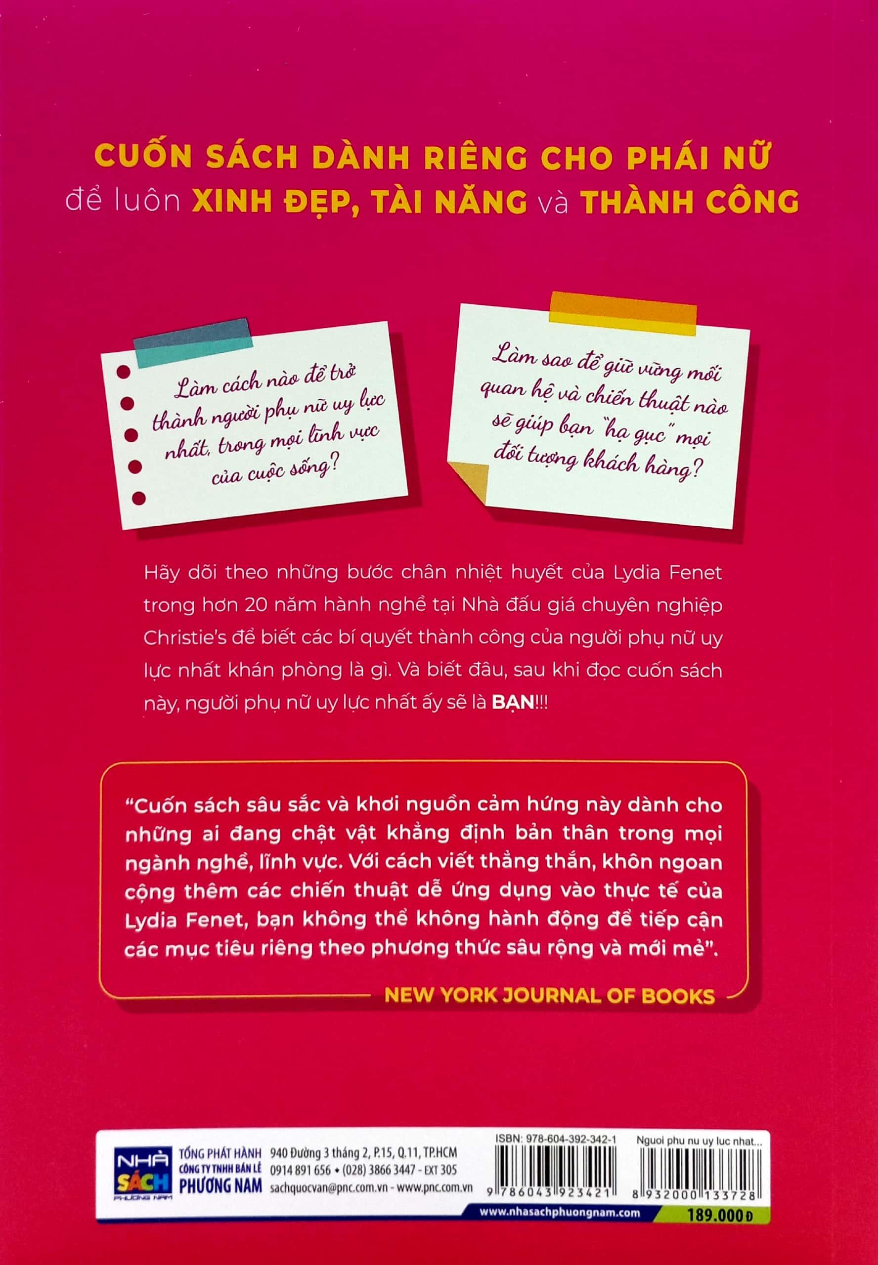 “Cuốn sách sâu sắc và khơi nguồn cảm hứng này dành cho những ai đang chật vật khẳng định bản thân trong mọi ngành nghề, lĩnh vực. Với cách viết thẳng thắn, khôn ngoan cộng thêm các chiến thuật dễ ứng dụng vào thực tế của Lydia Fenet, bạn không thể không hành động để tiếp cận các mục tiêu riêng theo phương thức sâu rộng và mới mẻ”.