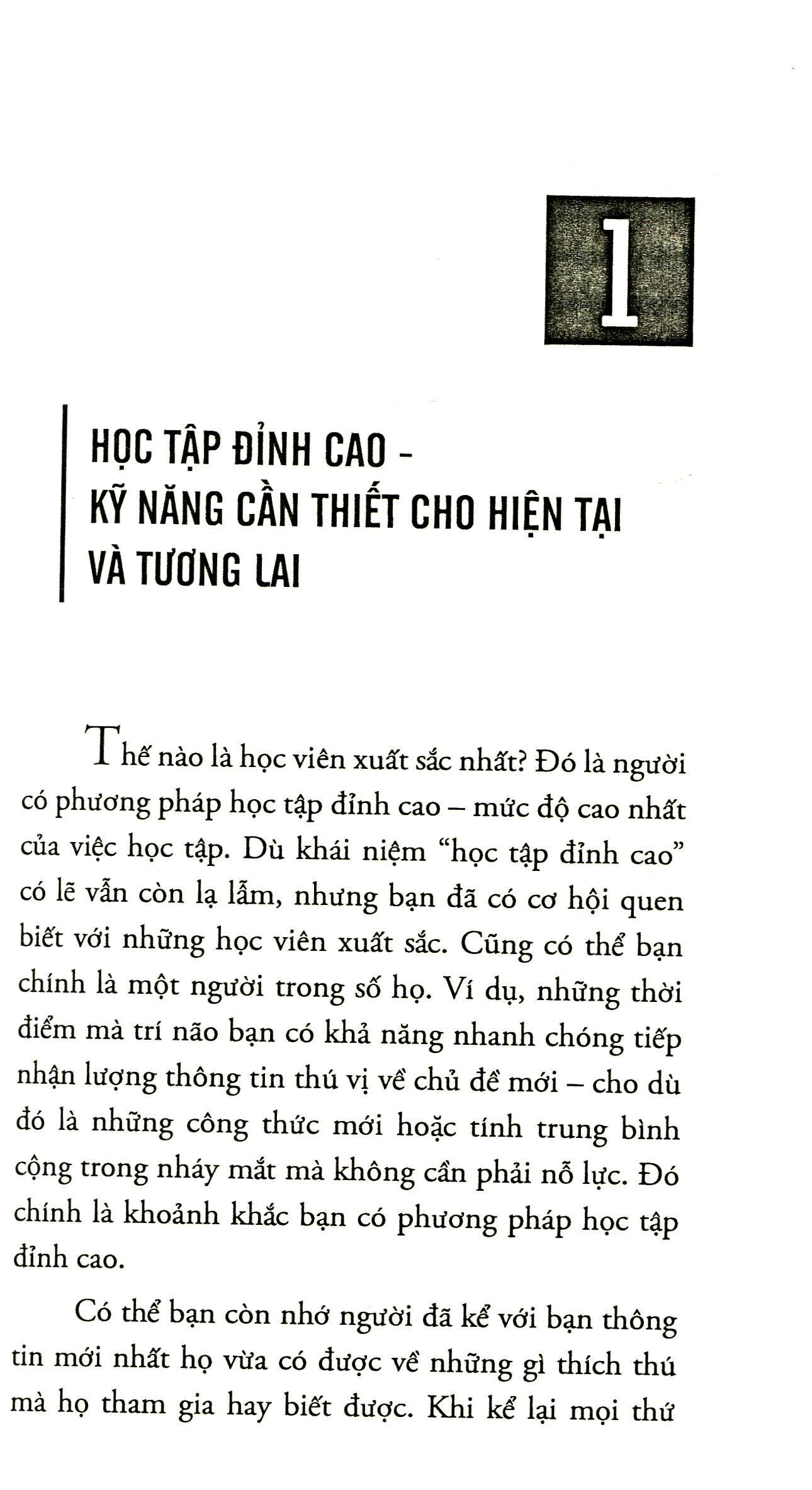 Phương pháp học tập đỉnh cao là cách thức học tập mới mẻ ngày càng được các nhà giáo dục công nhận là cần thiết cho mọi cá nhân. Đây là một chương trình tự định hướng sự phát triển của mỗi cá nhân. Điều đó nghĩa là nắm bắt những kỹ năng mới để hiểu bản thân mình và thế giới - thứ tài sản đích thực mà có thể bạn chưa bao giờ đánh mất.