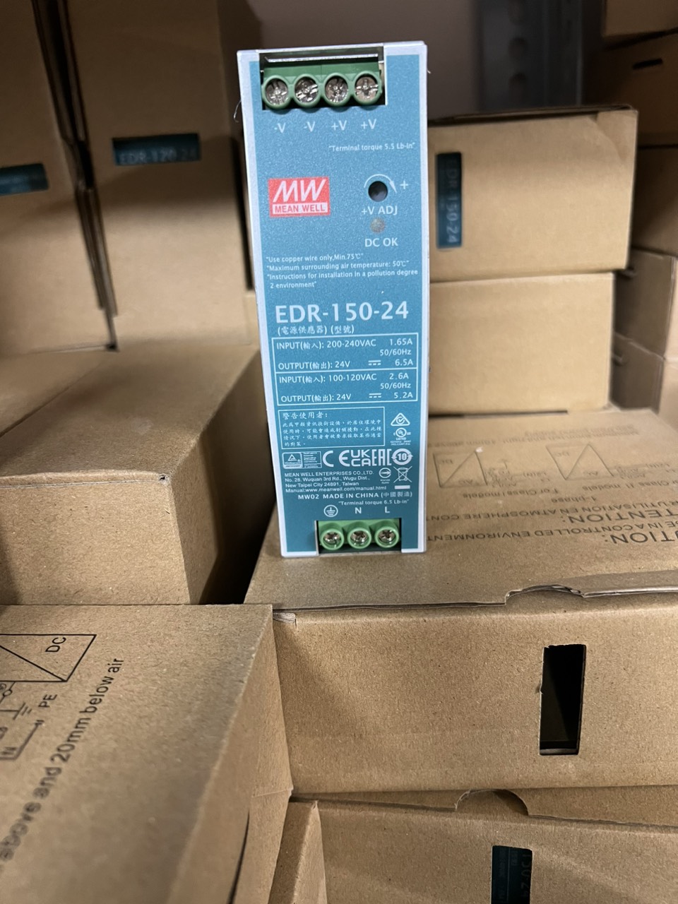 - Thông số: 156W / 230VAC 125W / 115VAC – 24V – 6.5A / 230VAC 5.2A / 115VAC 0 ~ 6.5A / 230VAC 0 ~ 5.2A / 115V - Nhà sản xuất: Meanwell - Tình