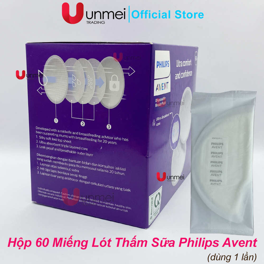 Mua tại TiktokMiếng lót thấm sữa Philips Avent với dáng bầu thuyền ôm trọn bầu ngực mẹ, tinh tế khi sử dụng cùng các dạng trang phục hàng ngày, nhẹ nhàng, kín đáo. Cấu tạo 3 lớp với khả năng thấm hút cực tốt: – Lớp trên cùng tiếp xúc với da mẹ được thiết kế dạng tổ ong hỗ trợ thoáng khí, tạo cảm giác khô ráo và tránh bức bí cho làn da vùng ngực nhạy cảm. – Lớp lõi trúc 3 lớp siêu thấm hút với xơ sợi mềm, vải không dệt và polymer siêu thấm đảm bảo khả năng thấm hút nhanh chóng các dịch lỏng. – Lớp ngoài cùng khóa ẩm, tránh tình trạng rỉ sữa ra bên ngoài gây mất thẩm mỹ và khó xử cho các bà mẹ đang nuôi con bú. Độ dày miếng lót thấm sữa chỉ 2 mm rất mỏng nhẹ, thoải mái ngay cả khi mẹ sử dụng cùng với các kiểu áo nịt ngực. Thiết kế có 2 băng dính giúp cố định chắc chắn miếng lót trên bầu ngực, tránh xê dịch, mẹ có thể an tâm sử dụng cho mọi kiểu trang phục. Mẹ dùng miếng lót thấm sữa vào ban đêm, hoặc khi ra ngoài, khoảng thời gian giãn cữ bú khiến ngực căng và dễ tiết sữa… để tránh tình trạng rỉ sữa gây khó xử, mùi và kém vệ sinh. Sản phẩm với hộp 60 miếng có bao bì riêng sử dụng tiện lợi, 1 miếng lót cho 1 lần sử dụng với 1 bên ngực, rất dễ cho mẹ mang theo khi ra ngoài. Lưu ý khi sử dụng miếng lót thấm sữa