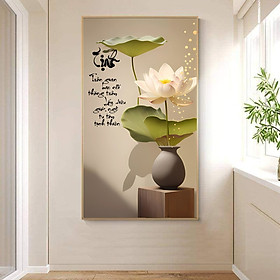 Tranh treo tường tráng gương hoa sen chữ Tịnh thư pháp - Kích thước của tranh : Kích thước : 35x70cm - 45x85cm - 55x105cm - 60x120cm - Chất liệu : Tráng gương (mặt mica