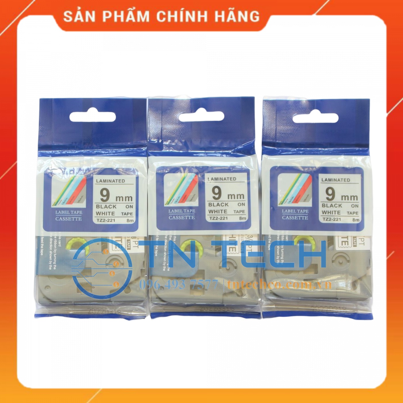 Nhãn in TZ2-221 Brother Nhãn in đa lớp sử dụng cho máy in nhãn Brother, tất cả trong 1, mực nằm bên trong, chống chịu dung môi, hóa chất, nước, dầu mỡ, nhiệt độ Mã