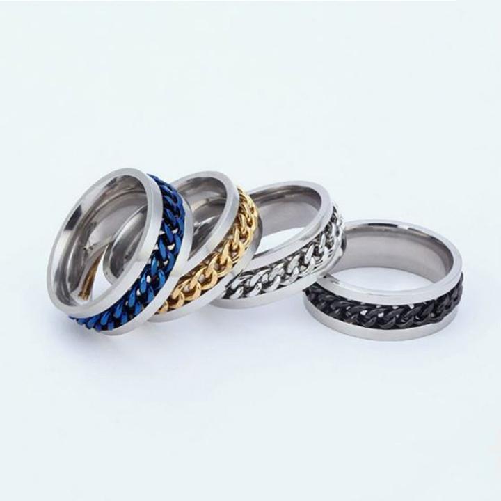 ✨Nhẫn inox phối xích xoay nam nữ nhiều màu cao cấp thời trang thép không gỉ trangsucpt khui bia