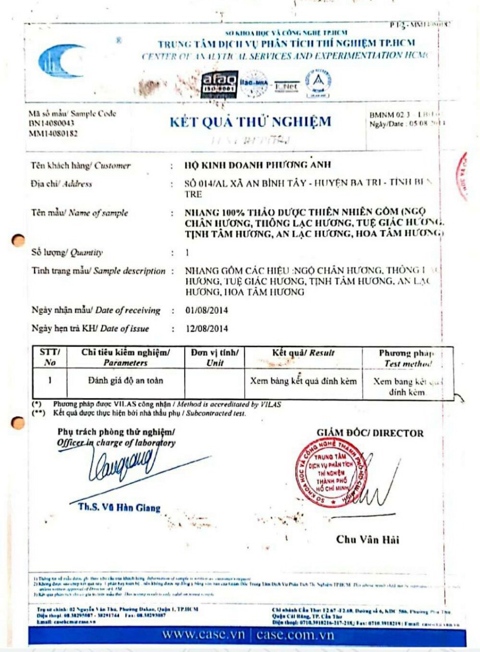 KHÔNG ĐỘC HẠI TRONG KHÓI HƯƠNG Với mục đích đem lại sức khỏe và an toàn cho người sử dụng khỏi các loại hương tẩm hóa chất độc hại, với 100% không sử dụng hóa chất 100% nguyên liệu từ thảo mộc đảm bảo sức khỏe người tiêu dùng. Đóng gói: Loại 5 cây/1túi dài 75cm đốt 6 giờ Loại 5 cây/ 1túi dài 50cm đốt 4 giờ Loại 10 cây /1túi dài 45cm đốt 3 giờ Hương nhang càng để lâu càng thơm.100% là hương loại sạch