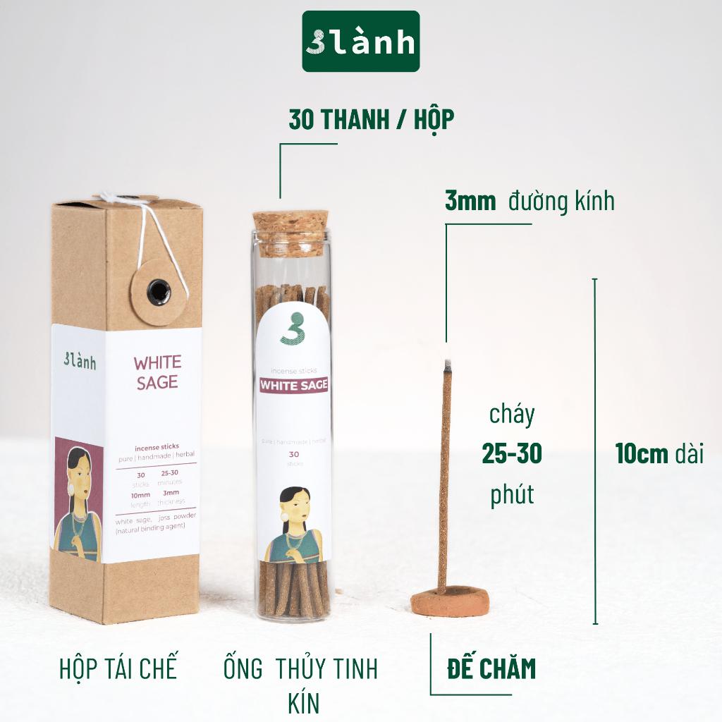 Thông tin sản phẩm Nhang Thanh Thủ Công Xô Thơm Trắng (White Sage) 3 Lành Nhang Xông Thơm Thanh Tẩy Tự Nhiên