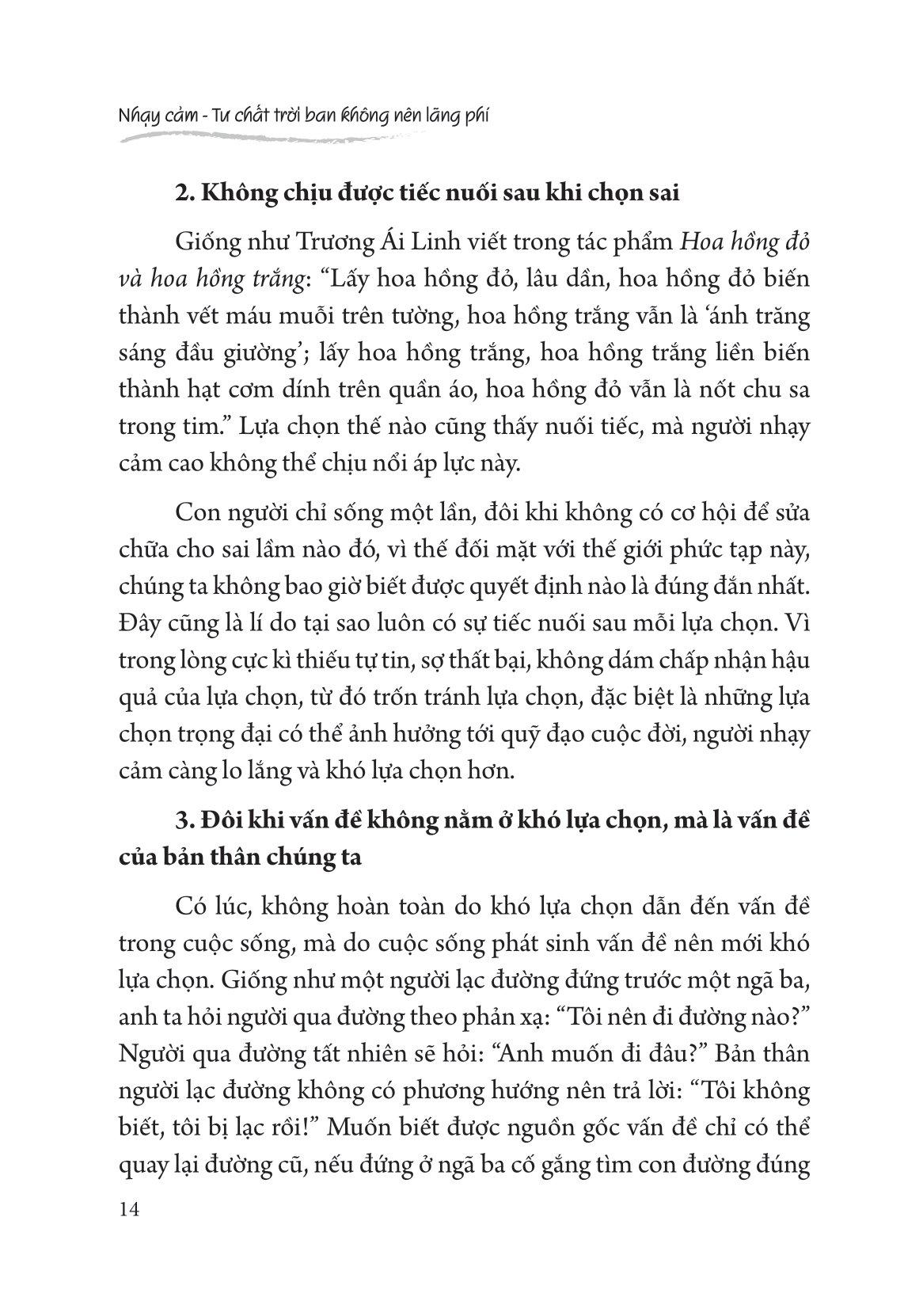 Tuy chúng ta không thể cải tạo sự nhạy cảm từ gốc rễ, nhưng chúng ta có thể sẫn dắt và hoàn thiện nó.Tính cách nhạy cảm và tính cách hướng nội giống nhau, đều có sức mạnh nội tại, đều có ưu điểm và khuyết điểm riêng của chúng, mấu chốt là chúng ta điều khiển chúng như thế nào để đạt được hiệu quả trong cuộc sống của m.ình.