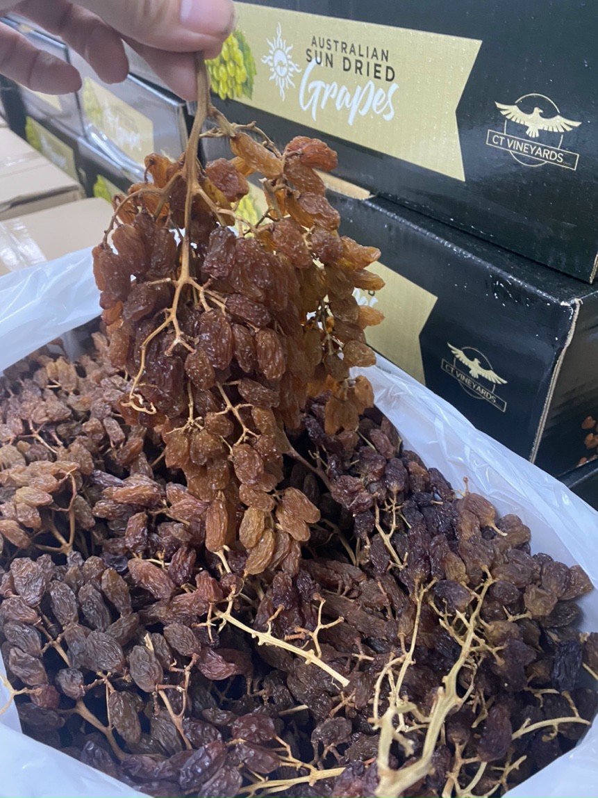 Nho khô nguyên cành là đặc sản của Úc với đặc điểm phơi nắng tự nhiên, không tẩm ướp đường và hóa chất, giữ được hàm lượng dinh dưỡng ở mức cao nhất cùng hương