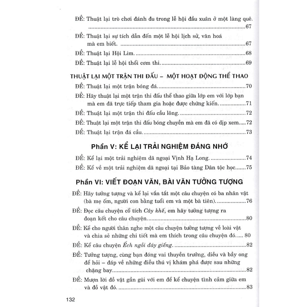 Trên tay các em là cuốn sách NHỮNG BÀI LÀM VĂN MẪU 4. Trong cuốn sách này, tác giả chú ý biên soạn đáp ứng trọng tâm các yêu cầu về kĩ năng và yêu cầu về kiến thức cần có cho các em khi học môn Tiếng Việt nói chung và môn Tập làm văn nói riêng. Tác giả cũng chú ý biên soạn nhiều bài văn củng cố, mở rộng – nâng cao kiến thức, kĩ năng và tổ chức hệ thống đề bài để “học” luôn đi đôi với “hành”. Những đề bài mở rộng và nâng cao trong cuốn sách này không quá khó, luôn gắn với khả năng tiếp nhận của các em.