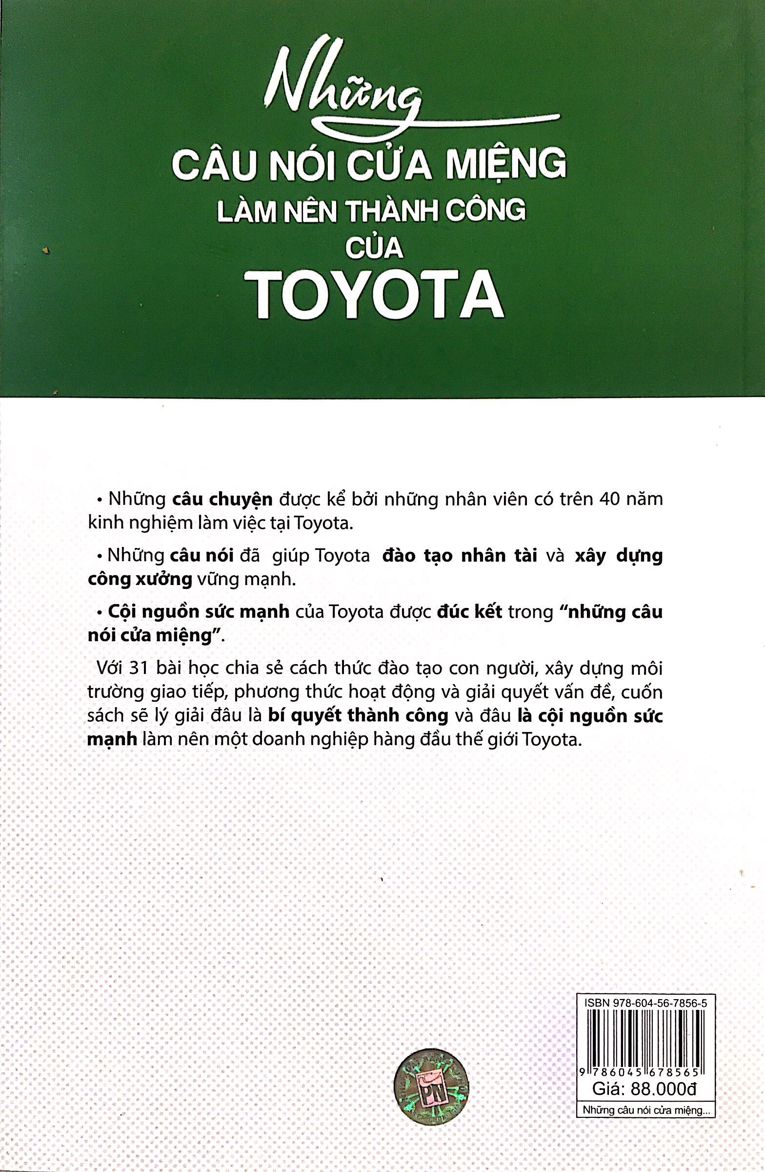 Sau cơn khủng hoảng Lehman một thời gian, trong công ty Toyota truyền tai nhau một câu nói: “Có một thứ mà chúng ta nhất quyết phải lấy lại. Mặc dù công ty đã chịu thiệt hại vô cùng lớn nhưng chỉ cần quay trở lại phương thức Toyota thì mọi chuyện sẽ được giải quyết.” Chính điều này đã trở thành chỗ dựa tinh thần cho mọi người. Ở Toyota, họ có những "câu nói cửa miệng" lưu truyền trong công xưởng. Những câu nói đó được truyền đi từ giám đốc đến các quản lý, từ các quản lý đến các nhân viên, từ các đàn anh đi trước đến các đàn em nối sau.Cội nguồn sức mạnh của Toyota được đúc kết trong những “câu nói cửa miệng”.