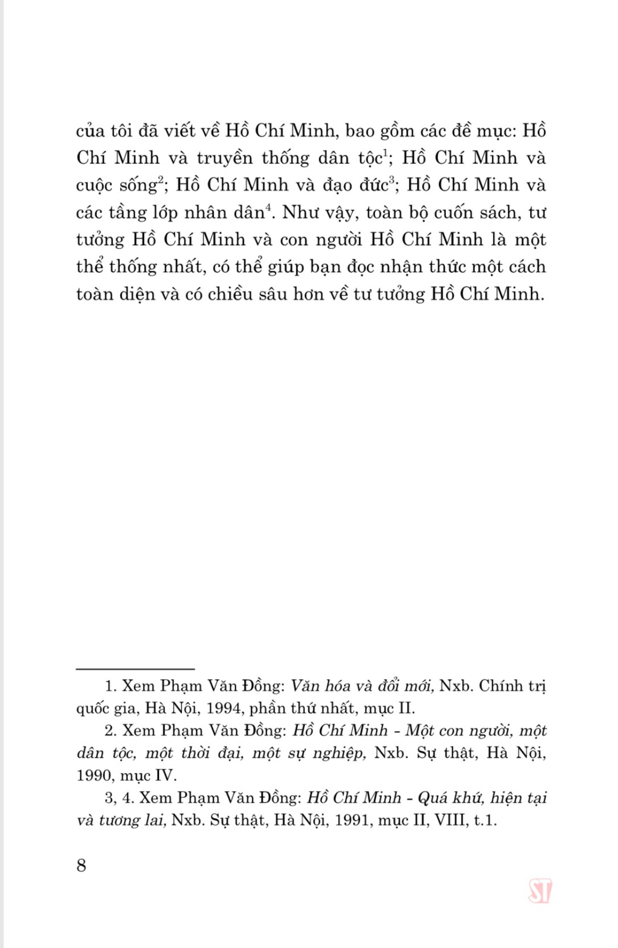 Cuốn sách trình bày những nhận thức của cố Thủ tướng Phạm Văn Đồng - người học trò xuất sắc của Chủ tịch Hồ Chí Minh về quá trình hình thành và nội dung cơ bản của tư tưởng Hồ Chi Minh đồng thời khái quát cuộc đời hoạt động cách mạng của Người. Việc vận dụng sáng tạo tư tưởng Hồ Chí Minh, những luận điểm giàu giá trị lý luận và thực tiễn của Người về con người, nhân dân và dân tộc có ý nghĩa vô cùng quan trọng trong sự nghiệp công nghiệp hóa, hiện đại hóa đất nước hiện nay.
