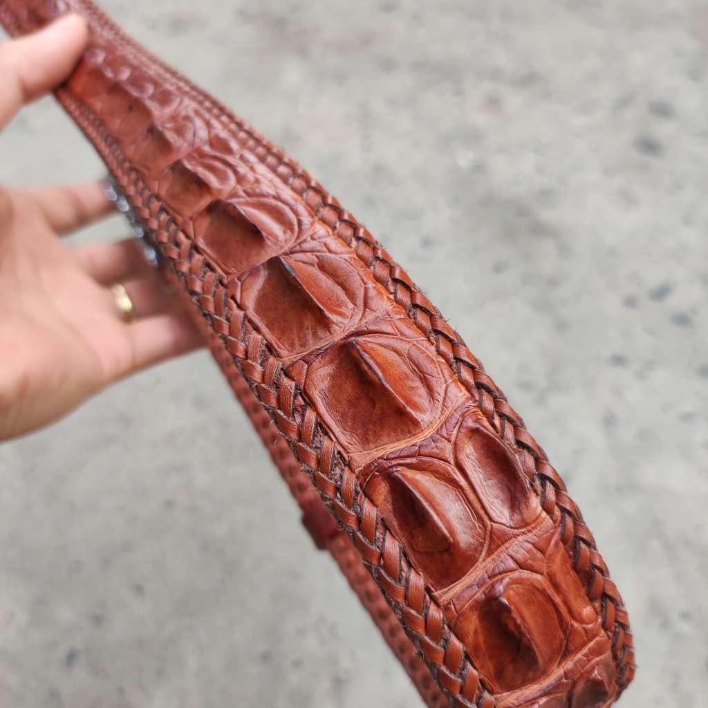 Dây lưng da cá sấu liền 1 miếng đan viền thủ công