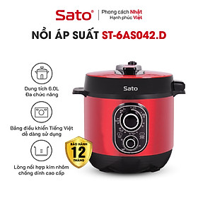 ✨Nồi áp suất đa năng SATO 6AS042.D 6.0L - Nồi áp suất đa chức năng : nấu cơm, nấu cháo, hầm gân, ninh, súp, hấp, giữ ấm ... Dung tích : 6.0 lít phù hợp gia đình 4 - 6 người - Miễn phí vận chuyển toàn quốc - Hàng chính hãng