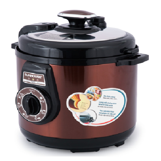 Thiết kế sang trọng, đẹp mắt Nồi áp suất điện đa năng SUNHOUSE SHD1756 có thiết kế nổi bật với thân nồi bằng thép sơn tĩnh điện màu cà phê sang trọng. Nắp nồi bằng