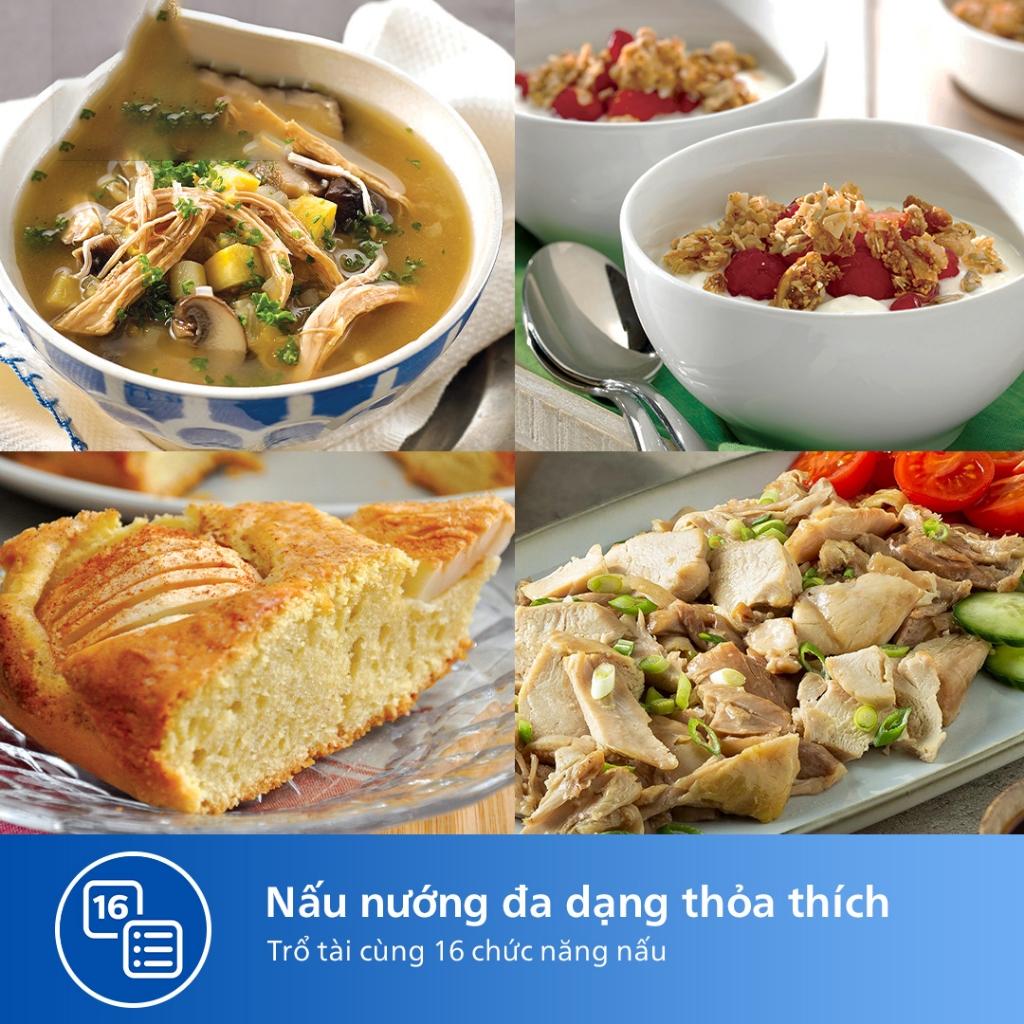 Đa chức năng nấu: nấu cơm, giữ ấm, hầm xương, hầm thịt, nấu đậu, nấu gân, nấu cháo, nấu canh, nấu bò, nấu thịt cừu, hầm, nấu gà/vịt, làm bánh…