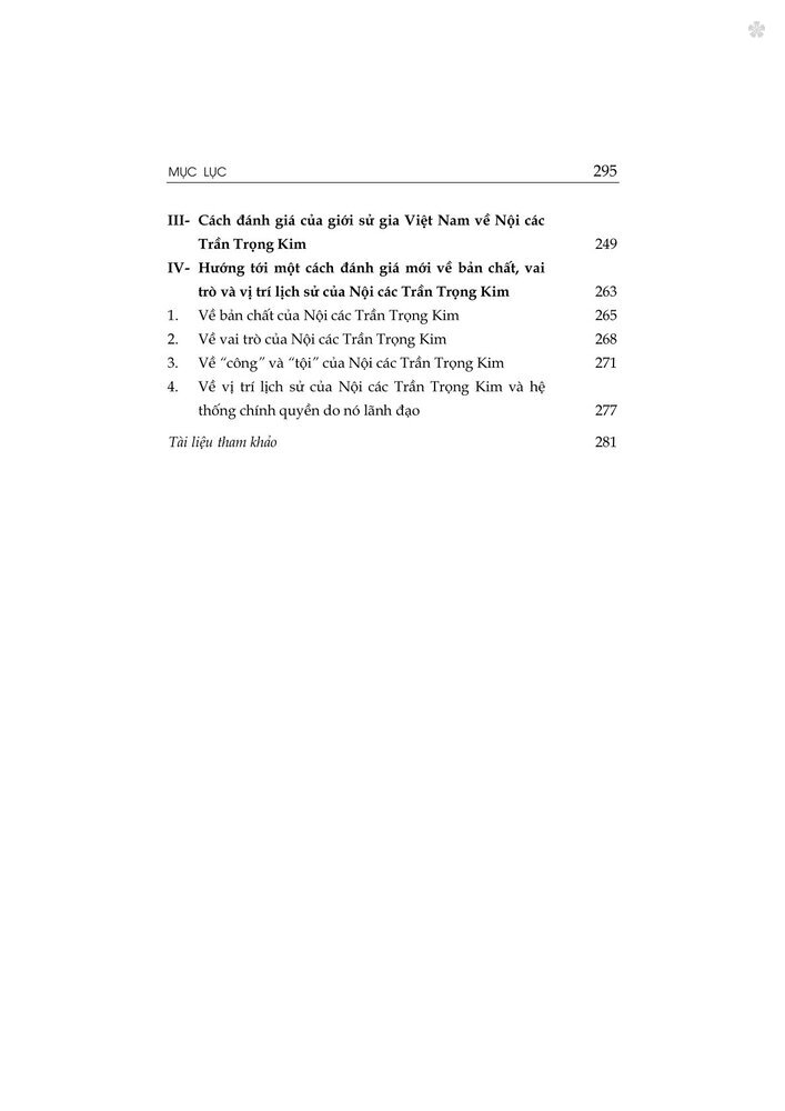 Cuốn sách: Nội các Trần Trọng Kim - Bản chất, vai trò và vị trí lịch sử của GS.TS. Phạm Hồng Tung. Trong những lần xuất bản trước, cuốn sách đã được đông đảo bạn đọc, đặc biệt là các nhà nghiên cứu lịch sử hoan nghênh.