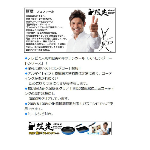 - Những lưu ý CẦN THIẾT khi sử dụng sản phẩm: Không đun nóng sản phẩm rỗng ở trên bếp. Sản phẩm có thể bị biến dạng, tróc lớp chống dính hoặc gây ra hỏa hoạn. Khi làm nóng sản phẩm, thời gian làm nóng khoảng 30 giây. Thời gian làm nóng sản phẩm quá lâu có thể gây ra hiện tượng cháy khét, làm hư hỏng sản phẩm. Trường hợp cháy hỏng cũng có thể xảy ra nếu nếu nguyên liệu chế biến trong sản phẩm quá ít. Đặt sản phẩm lên giữa ngọn lửa để đảm bảo nhiệt được tỏa đều, khi sử dụng hai hoặc nhiều bếp lửa, không đặt tay cầm gần ngọn lửa, nên chú ý hướng của tay cầm. Nếu để tay cầm gần ngọn lửa, tay cầm có thể bị nóng gây bỏng thậm chí bị hư hỏng, ảnh hưởng đến sức khỏe & sự an toàn của người sử dụng. Khi sử dụng, nên kiểm soát ngọn lửa không vượt quá đường kính của đáy nồi, nếu đun nấu trong một thời gian dài trên ngọn lửa, ngọn lửa sẽ tiếp xúc gián tiếp với tay cầm, làm tay cầm nóng lên có thể bị hư hỏng hoặc gây bỏng. Không để thực phẩm/ thức ăn trên sản phẩm trong một thời gian dài, nên bảo quản chúng vào vật dụng khác chuyên dụng sau khi chế biến. Tất nhiên lớp sơn chống dính luôn đảm bảo đầy đủ các tiêu chuẩn về vệ sinh an toàn thực phẩm, hãy yên tâm khi sử dụng. Không ngâm toàn bộ sản phẩm trong nước với thời gian quá dài, dễ làm bề mặt lớp chống dính bị hư hỏng. Lớp sơn chống dính là một vật chất bị tiêu hao, có thể bị bào mòn khi sử dụng trong thời gian dài, khi đó thực phẩm/ thức ăn có thể bị dính vào sản phẩm. Cần tránh ngọn lửa mạnh, chú ý điều chỉnh nhiệt độ phù hợp để sử dụng sản phẩm được lâu bền hơn. Khi sử dụng bếp từ, hãy sử dụng theo hướng dẫn. Khi sử dụng bếp từ trên 2KW, đảm bảo sức nóng có độ lớn trung bình. Nếu sử dụng một thiết bị 3KW để đun sôi nước, độ nóng quá lớn sẽ làm đáy sản phẩm bị biến dạng và đổi màu, bị cháy & có thể bị tróc lớp chống dính. Nếu đáy sản phẩm bị biến dạng, bếp từ sẽ không thể cảm nhận và điều chỉnh nhiệt độ như bình thường được, có thể gây hư hỏng & hỏa hoạn. Sử dụng dụng cụ đun nấu bằng tre, gỗ, nhựa để hạn chế sự trầy xước bề mặt lớp chống dính của sản phẩm. Lớp phủ chống dính sẽ bị bong tróc nếu sử dụng sản phẩm không đúng cách, khi đó nên ngưng sử dụng sản phẩm ngay lập tức! Sử dụng miếng giẻ mềm hoặc miếng mút chuyên dụng để cọ rửa/ vệ sinh sản phẩm sau khi sử dụng, không sử dụng những vật dụng sắc nhọn hoặc có độ nhám cao để cọ rửa/ vệ sinh sẽ dẫn đến lớp chống dính bị bong tróc, trầy xước & làm giảm khả năng chống dính. Nồi Show-A được sản xuất theo công nghệ mới vượt trội của Nhật Bản, sử dụng được cho nhiều loại bếp như bếp ga, bếp từ, bếp hồng ngoại. Show-A là thương hiệu hàng đầu chuyên sản xuất đồ gia dụng tại Nhật Bản. Các sản phẩm của Show-A luôn được chọn lọc & kiểm soát chặt chẽ về chất liệu, an toàn cho người sử dụng. Bên cạnh đó thương hiệu này còn cho ra đời những sản phẩm có thiết kế đẹp mắt mang tính tiện dụng cao, được người tiêu dùng toàn cầu tin tưởng và lựa chọn.