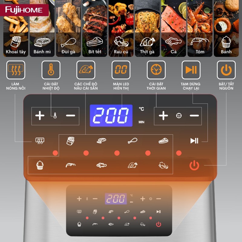 Mua tại TiktokNỒI CHIÊN KHÔNG DẦU FUJIHOME 12L NHẬP KHẨU [ DUNG TÍCH 12 LÍT - CẢM ỨNG 9 CHẾ ĐỘ NẤU NƯỚNG ] [ Lớp chống dính cao cấp - Vệ sinh dễ dàng- Tự ngắt an toàn ] >> PHÙ HỢP SỬ DỤNG 5 - 10 NGƯỜI <<< Phụ kiện tặng kèm: