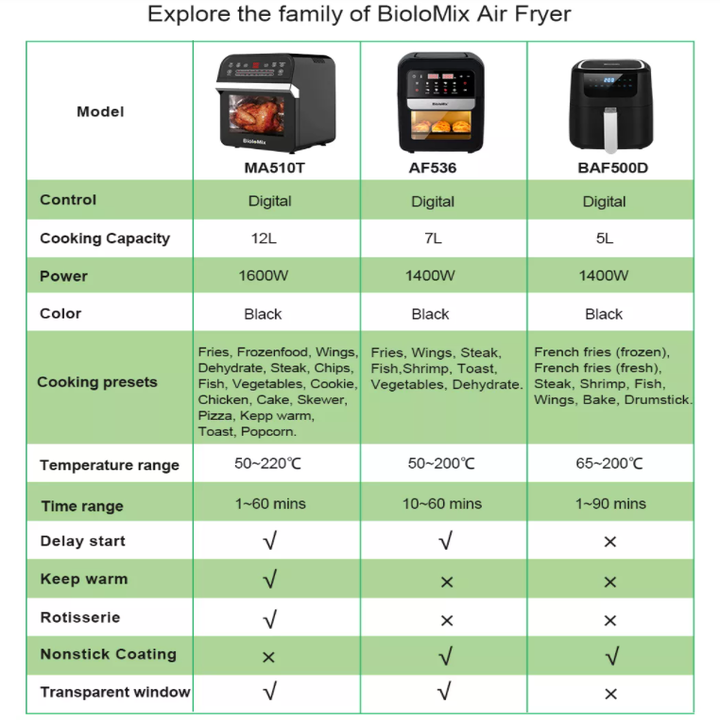 ✨Nồi chiên không dầu điện tử dung tích lớn 12 Lít Biolomix MA510T-Hàng chính hãng