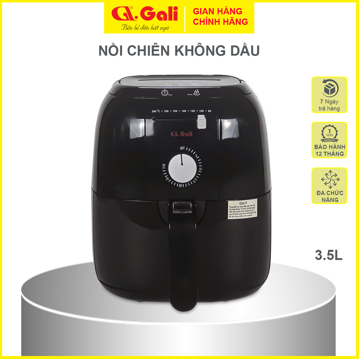 - Bạn dễ dàng sử dụng nồi chiên không dầu Gali chỉ bằng vài thao tác đơn giản. Chỉ cần vặn nút chỉnh thời gian và nhiệt độ phù hợp với thực phẩm cần chế biến theo nhu cầu Thông số kỹ thuật nồi chiên không dầu GL-1105