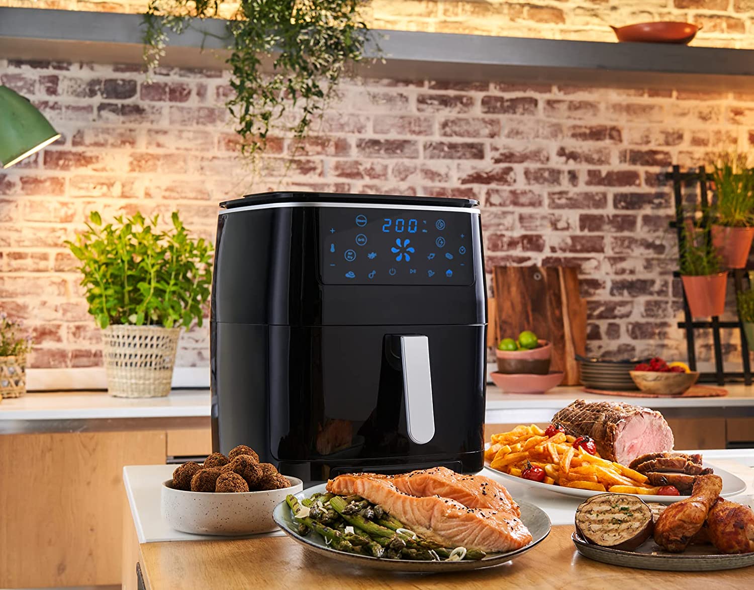 Nồi chiên không dầu đa chức năng, cảm ứng màn hình LED hiện đại – Nồi chiên không dầu Kalite Q6 được thiết kế với bảng điều khiển điện tử hiện đại được setup sẵn