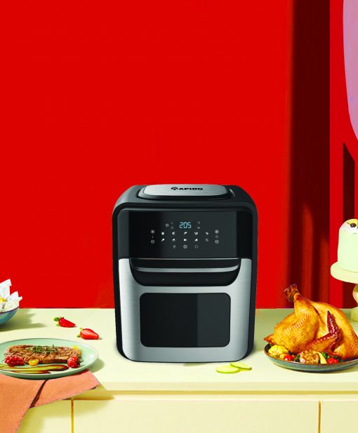 Nồi chiên không dầu dung tích 12 lít công suất 1500W • Phù hợp với nhiều thực đơn & nhu cầu nấu nướng lớn • Tích hợp quạt đối lưu và chức năng quay: Giúp