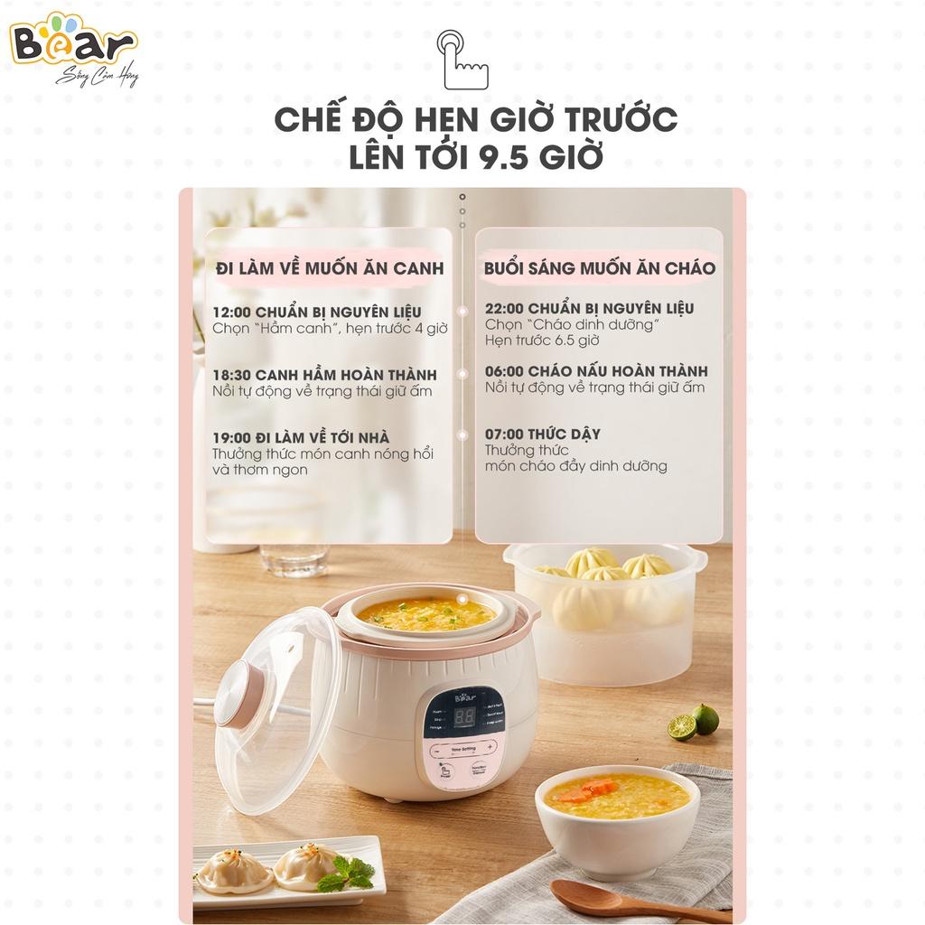 ✨Nồi chưng yến điện Bear, Nồi nấu chậm 0.8L Bear Chính hãng, nấu cháo bản Quốc tế - Hàng chính hãng
