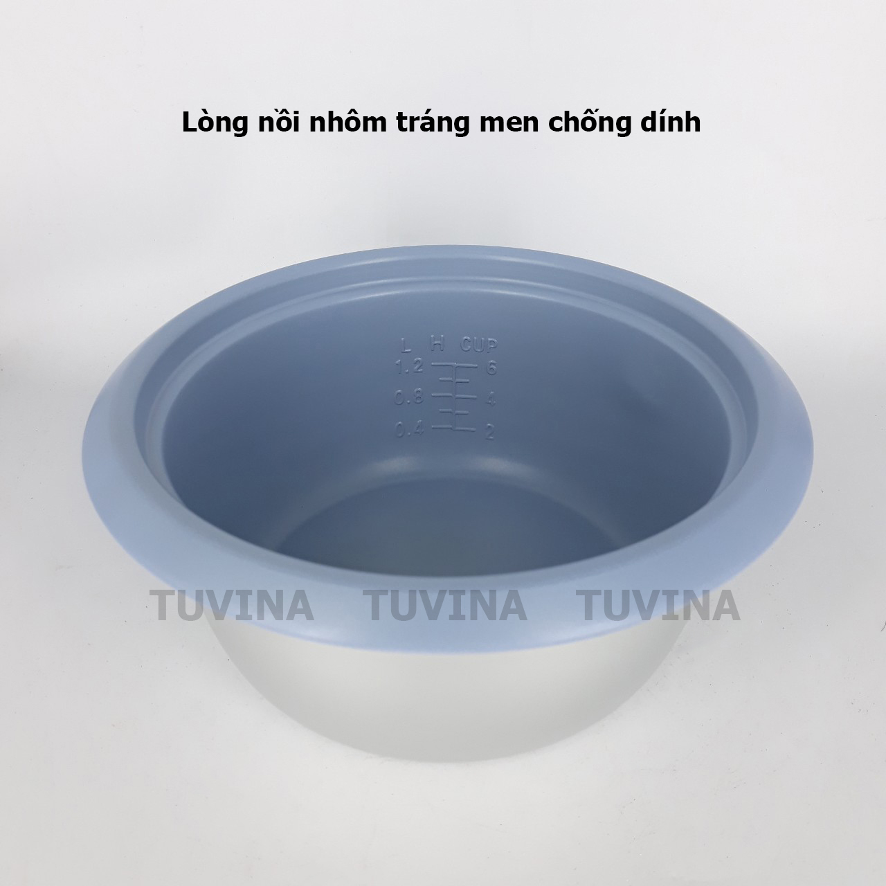 THÔNG SỐ KỸ THUẬT: Loại nồi: Nồi cơm nắp rời Điện áp: 220V - 50Hz Công suất: 500W Dung tích: 1.2L Chất liệu lòng nồi: Lòng nhôm phủ chống dính đa lớp Thiết kế thân