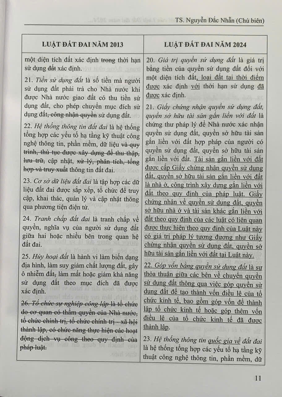 Để thuận tiện trong quá trình theo dõi, nghiên cứu, triển khai thi hành Luật, cuốn sách “Nội dung kế thừa, bổ sung, đổi mới của Luật Đất đai năm 2024 so với Luật Đất đai năm 2013” được trình bày như sau: