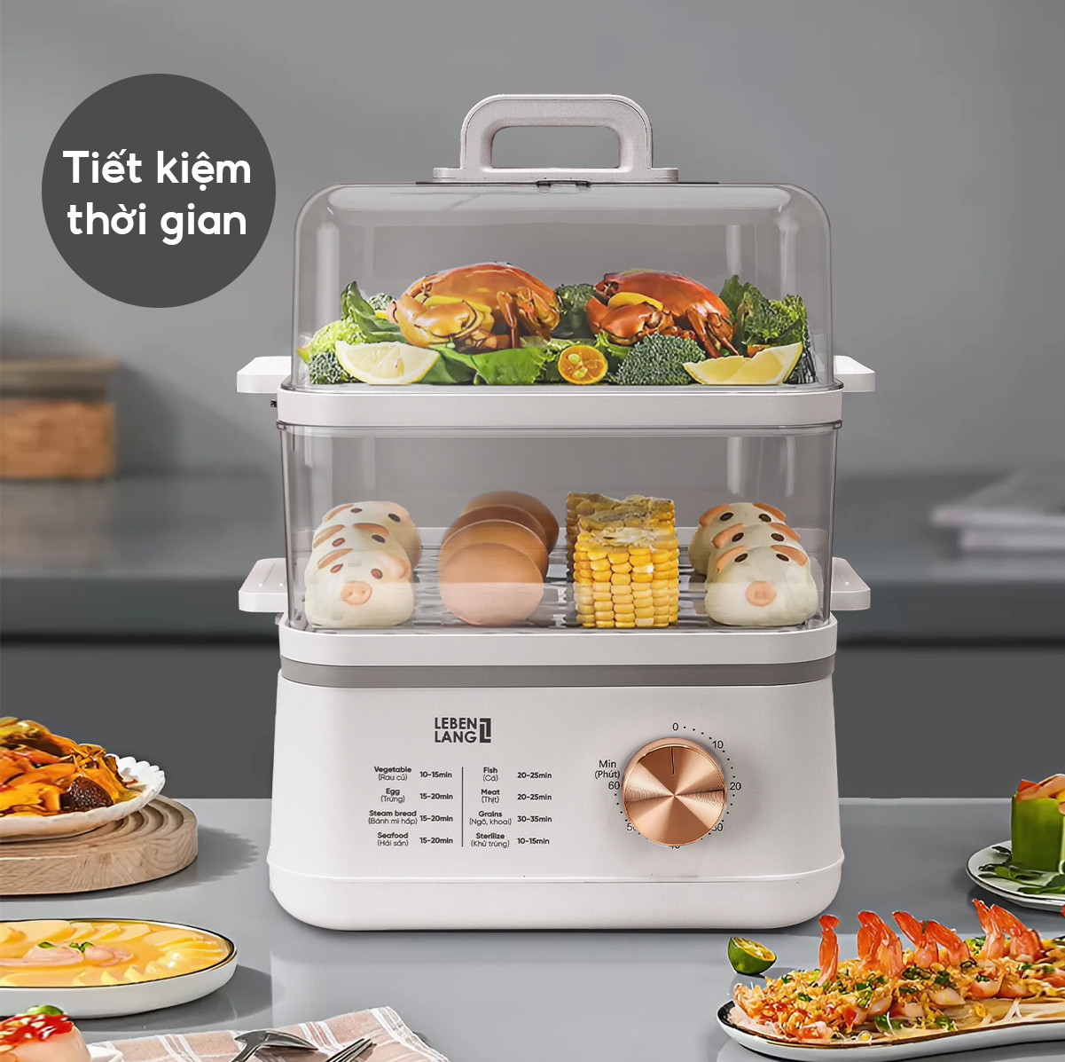 ✨Nồi hấp điện đa năng LEBENLANG LBEL5030 hấp 2 tầng,12L tiện lợi, 800W, bảo hành 2 năm - hàng chính hãng