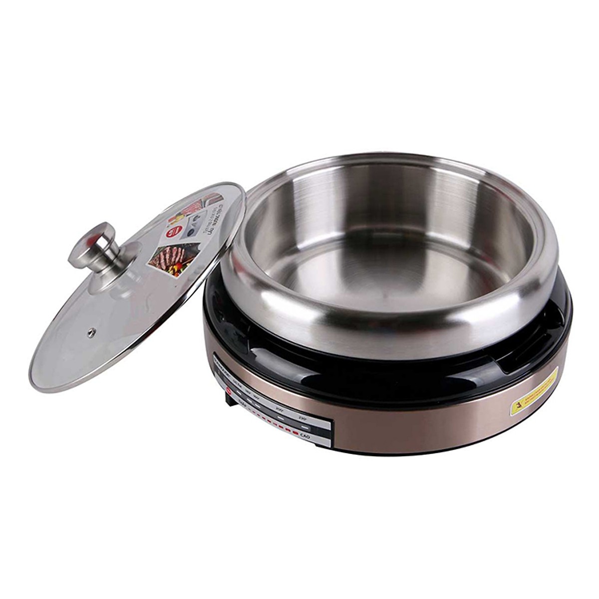 2 trong 1 gồm 2 lòng hợp kim phủ chống dính gốm Ceramic (lòng nướng bằng hơi nước và lòng nồi lẩu ) với 9 chức năng nấu (nấu lẩu, nướng, nướng bằng hơi nước,
