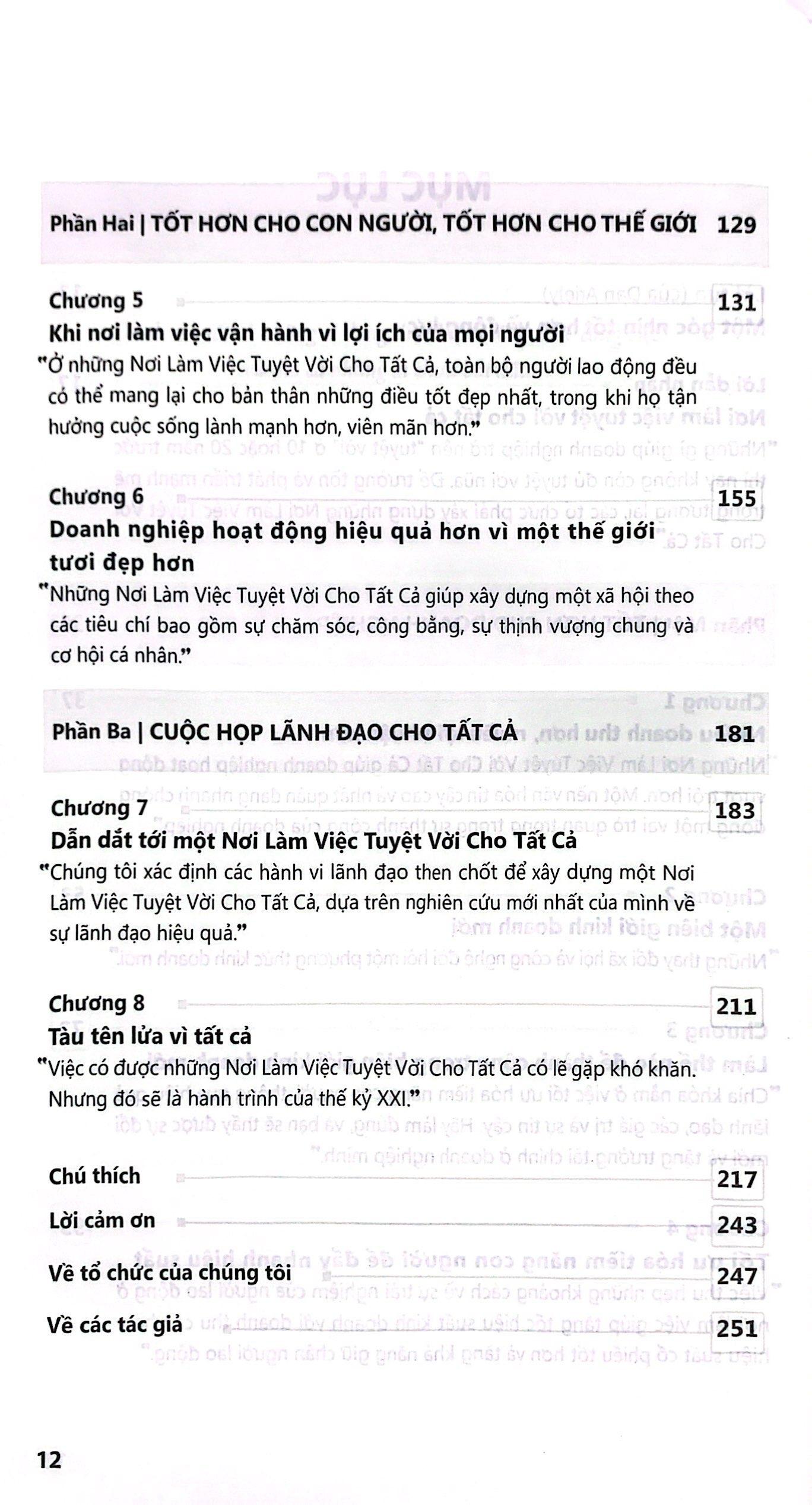 "Trong khi phần lớn thế giới nhìn thấy một sân chơi nghiêng về phía những người có quyền lực, thì những nơi làm việc tuyệt vời đang nỗ lực để san bằng điều đó - vì lợi ích của tất cả." (trích nội dung)