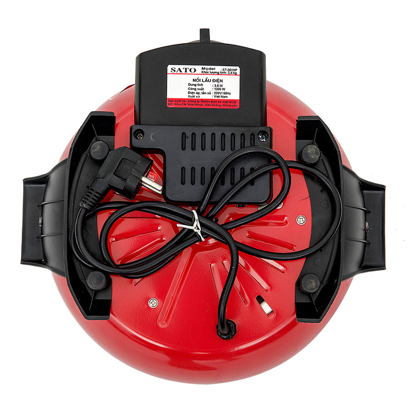 - Nồi Lẩu Điện SATO ST-351HP (3.5L) - Đỏ dùng để nấu lẩu, chiên, xào, rim và nấu canh, giúp bạn bổ sung nhiều món ngon vào thực đơn của gia đình. - Lòng nồi được làm từ nhôm