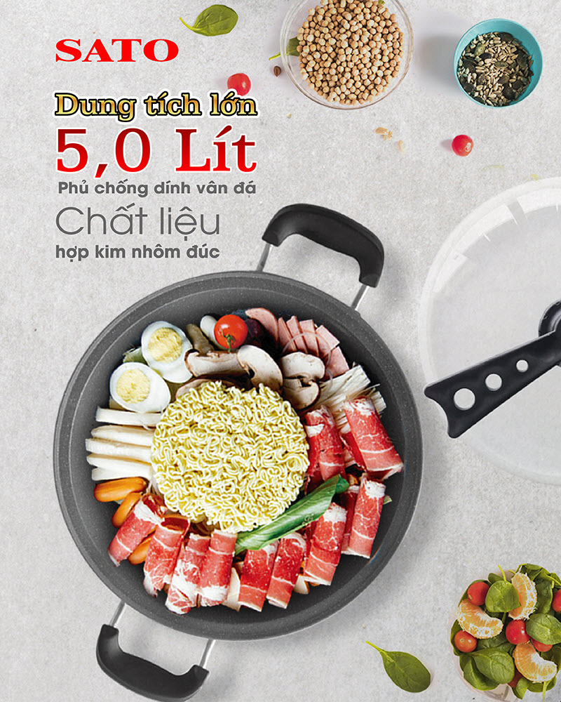 ✨Nồi lẩu đúc tròn 5L SATO 50NL52 - Hàng chính hãng