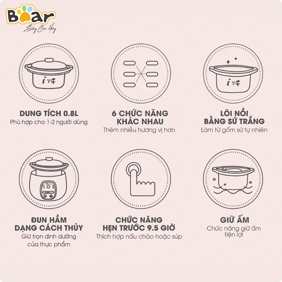 ✨Nồi Nấu Chậm 0,8L Bear SUBE001 Đa Năng Nấu Cháo, Chưng Yến Bản Quốc Tế - Hàng Chính Hãng