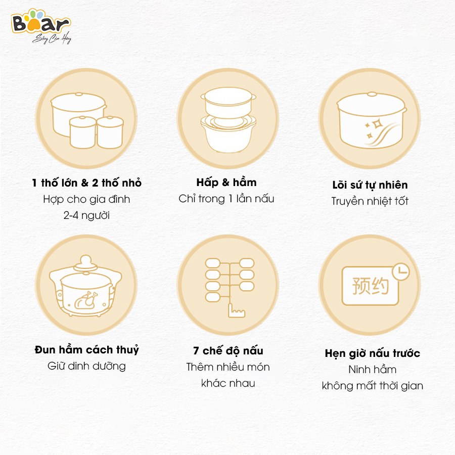 Nồi Nấu Chậm 1,6L Bear Chính Hãng Đa Năng Nấu Cháo, Chưng Yến Bản Quốc Tế Bảo Hành 18 Tháng - SUBE002Lý do nên mua Nồi Nấu Cháo Chậm 1,6L Bear SUBE002️Dễ sử dụng: bản Quốc tế kèm HDSD tiếng Anh và V...