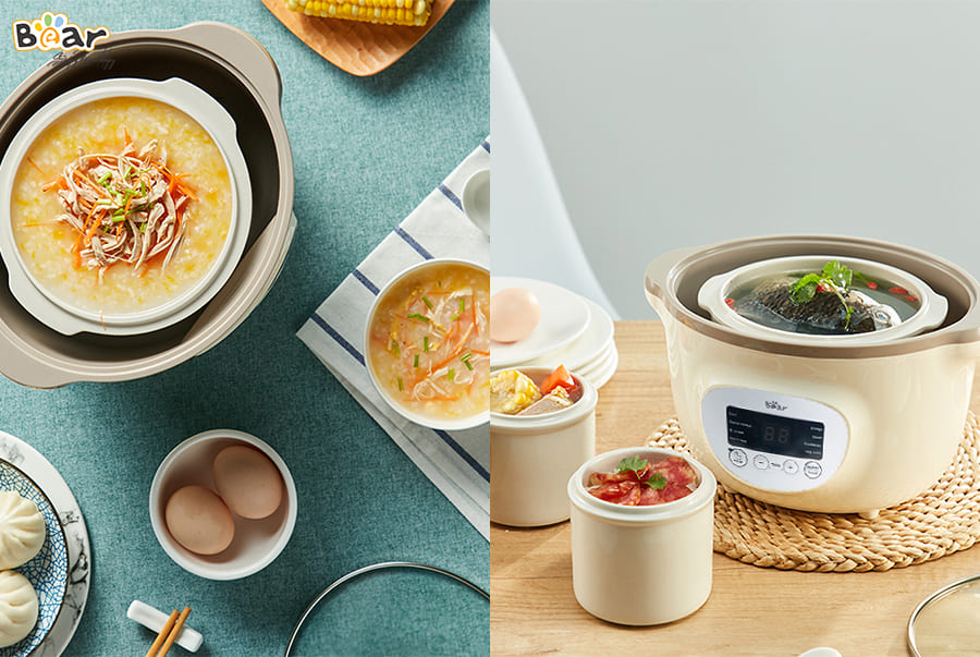 VỪA LÀ NỒI NINH HẦM CHÁO CÁCH THUỶ VỪA LÀ NỒI HẤP Thiết kế trang nhã, chất liệu cao cấp Nồi hầm điện Bear thiết kế đơn giản, trang trọng. Nhựa PP và gốm