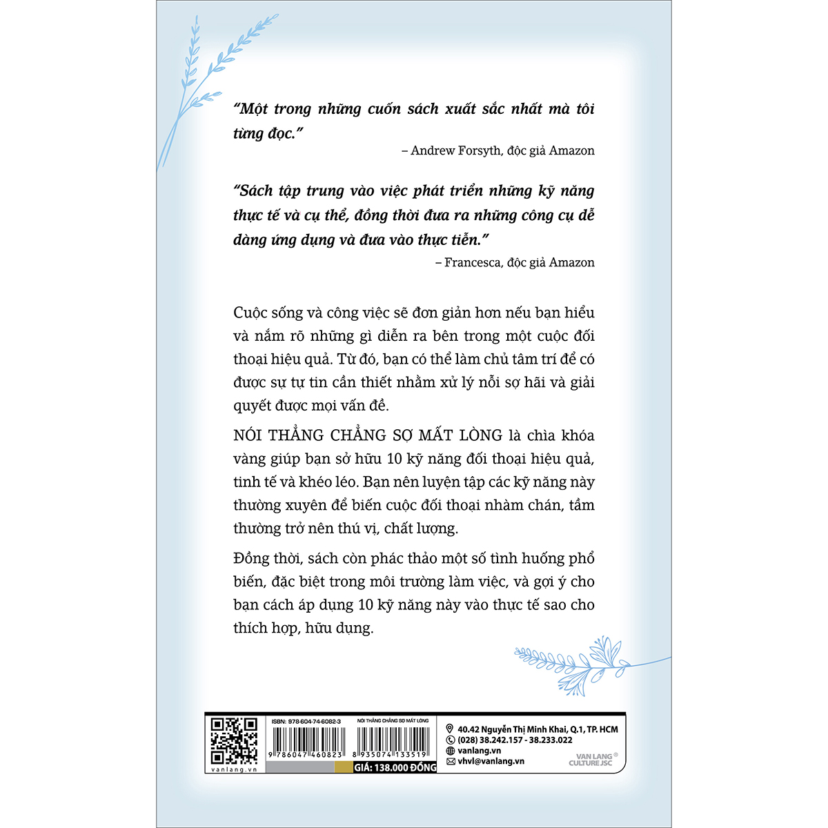 NÓI THẲNG CHẲNG SỢ MẤT LÒNG là chìa khóa vàng giúp bạn sở hữu 10 kỹ năng đối thoại hiệu quả, tinh tế và khéo léo. Bạn nên luyện tập các kỹ năng này thường xuyên để biến cuộc đối thoại nhàm chán, tầm thường trở nên thú vị, chất lượng.