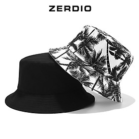 Nón bucket, Mũ vành nam nữ 2 mặt họa tiết cây dừa vải cotton cao cấp - ZERDIO