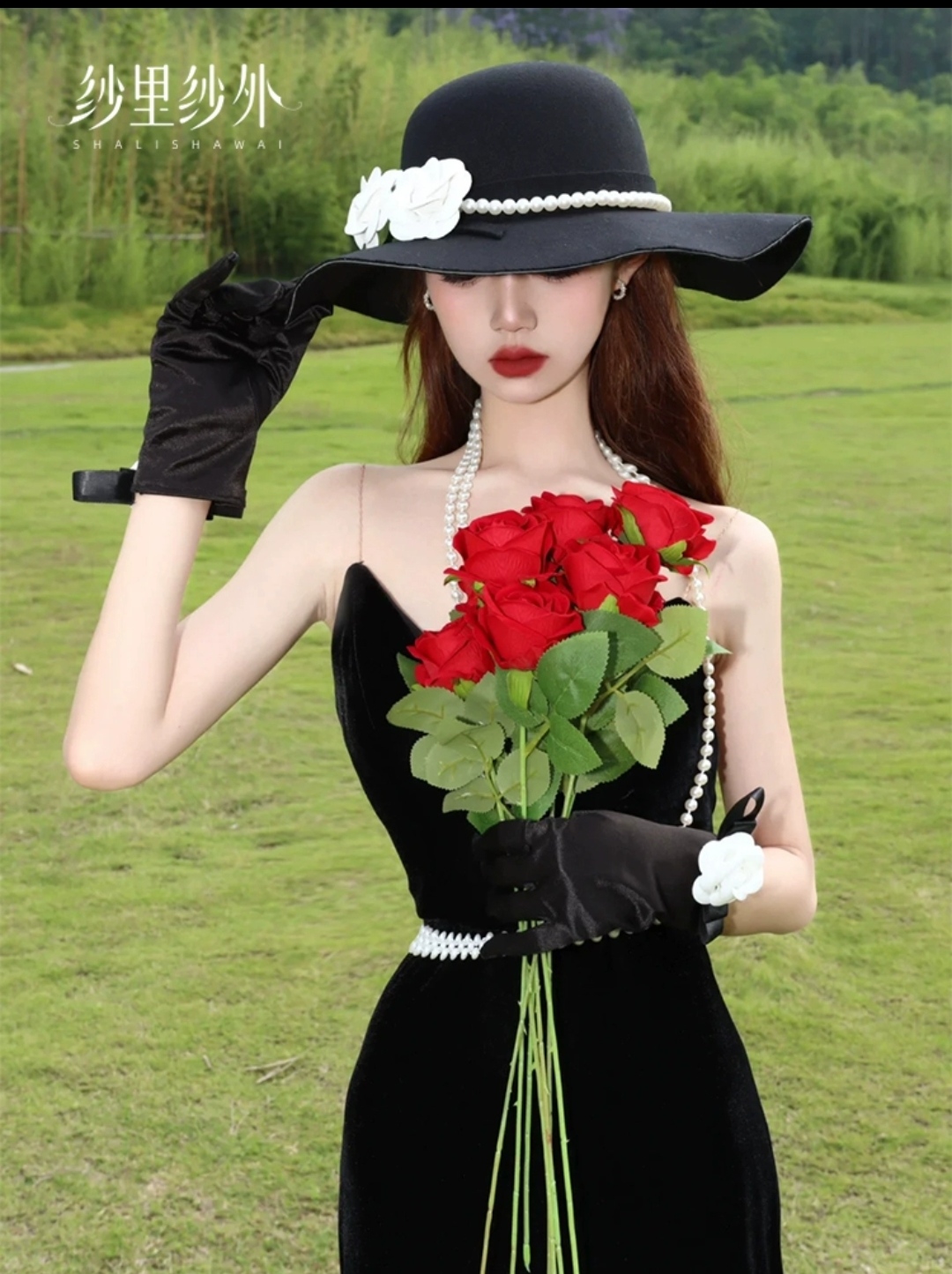 ✨Nón fedora vành rộng mũ rộng vành nỉ phối 2 hoa trắng đai ngọc trai nhân tạo sang trọng