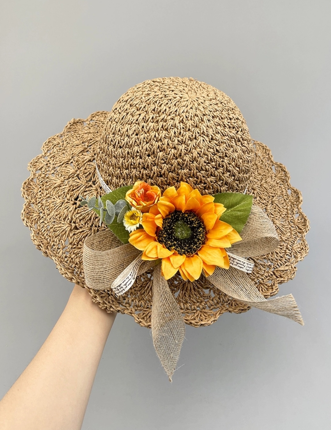 Mũ đi biển đẹp nón rộng vành nhỏ đai hoa lá thời trang Hàn Quốc Chất liệu cói