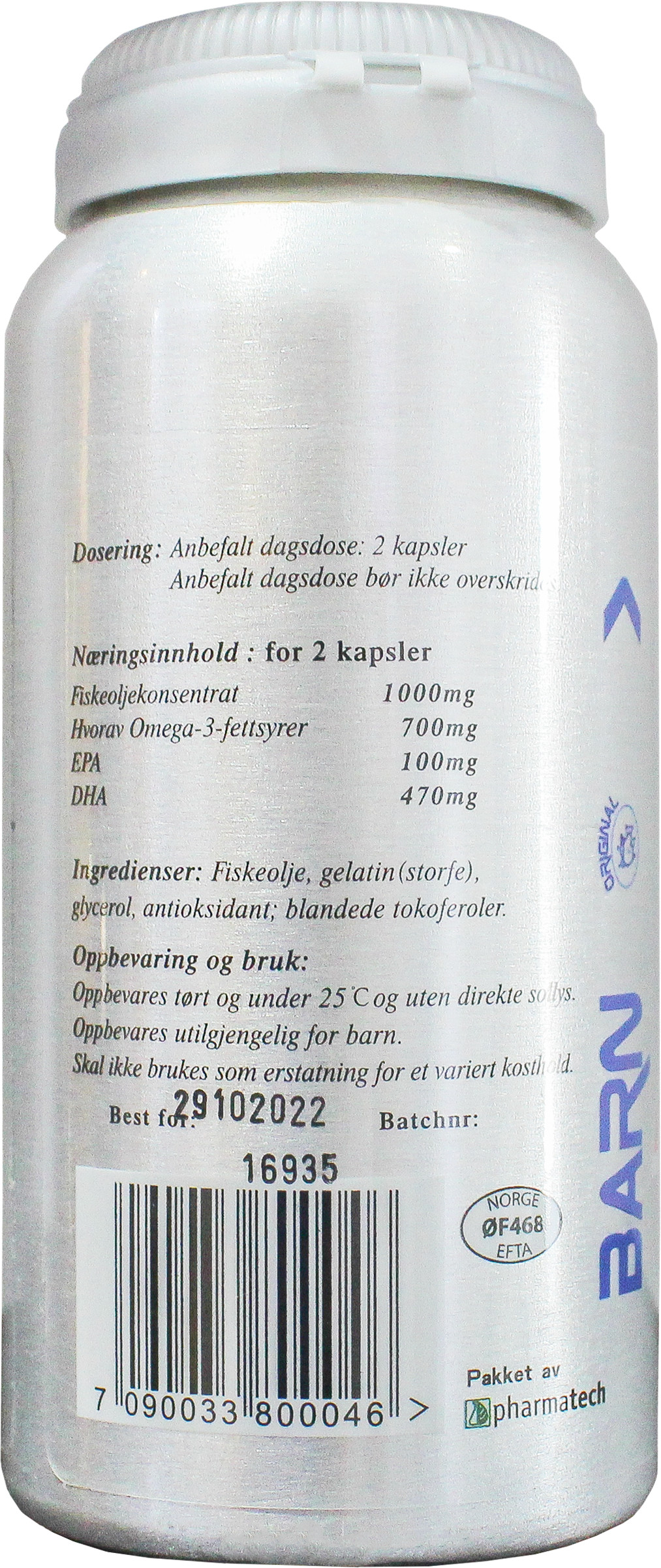 · Dầu Cá Norsk Barn Na Uy 90 Viên Dầu cá Norsk Barn là sản phẩm nổi tiếng của Na Uy. Được chiết từ dầu cá hồi tinh khiết cung cấp bởi Epax ( 180
