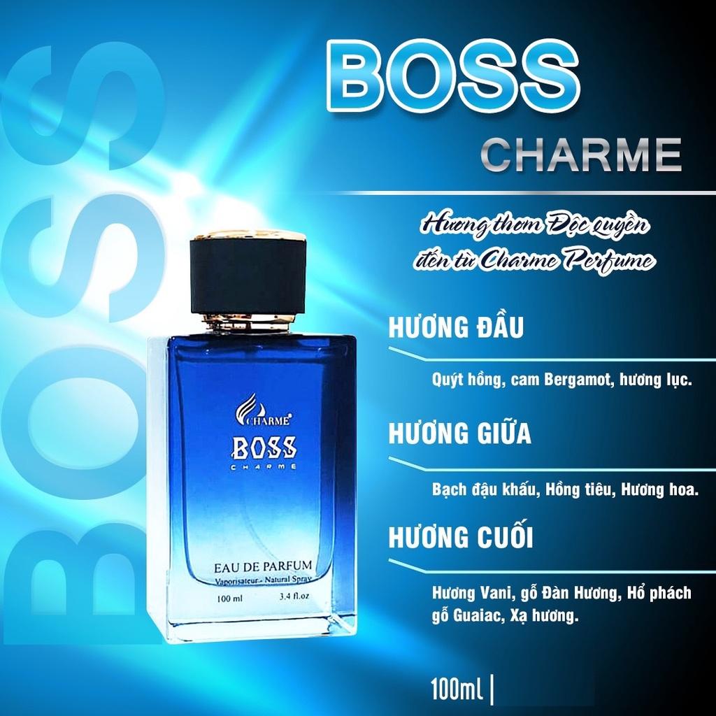Nước hoa nam Charme Boss Charme 100ml Là dòng nước hoa nam Charme lấy cảm hứng từ sự mạnh mẽ, dám đương đầu khó khăn của hệ thống nước hoa Charme. Chính sự mạnh mẽ ấy giúp Charme trở thành thương hiệu nước hoa Việt uy tín, chất lượng và được khách hàng tin dùng nhất.