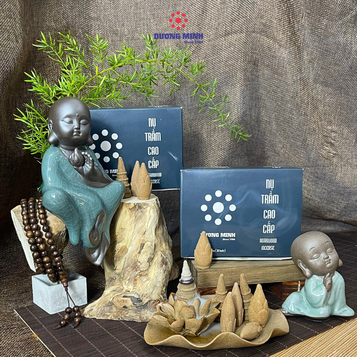 - Nụ Trầm Hương cao cấp Dương Minh là sản phẩm 100% trầm tự nhiên, nụ Trầm tự nhiên nguyên liệu từ gỗ trầm nguyên chất, không sử dụng thêm hương liệu hóa chất nào, dùng vỏ cây bời lời làm chất kết dính khi trộn với nước. Bên cạnh nhang nụ Trầm Hương được dùng thắp cúng, còn có tác dụng xông nhà khử mùi, xông trầm hương giúp tăng vượng khí trong phong thủy Nụ trầm khói ngược đặt trên thác khói là cách thư giãn giảm stress rất hiệu quả vì mùi thơm của trầm giúp tinh thần thật nhẹ nhàng sảng khoái đồng thời khi ngắm dòng thác khói tỏa ngược từ nụ nhang trầm hương rất thư thái. Dùng làm quà tặng người thân, bạn bè, đồng nghiệp, đối tác thật ý nghĩa.Món quà tặng thật tuyệt vời từ thiên nhiên.