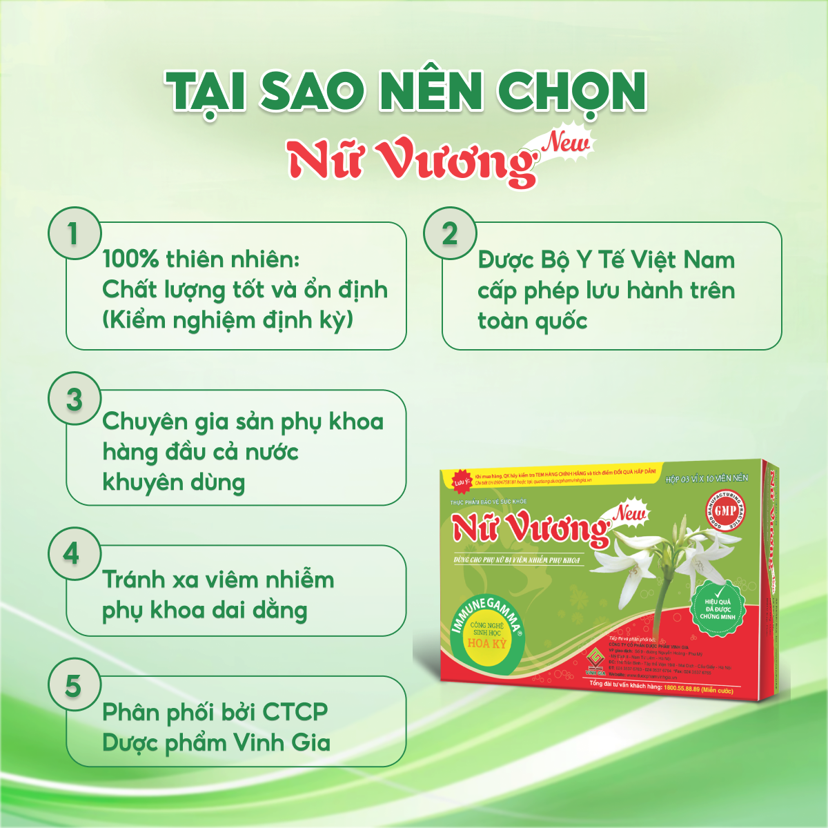 TPBVSK NỮ VƯƠNG NEW Dùng cho phụ nữ bị viêm nhiễm phụ khoa - Hiệu quả đã được chứng minh