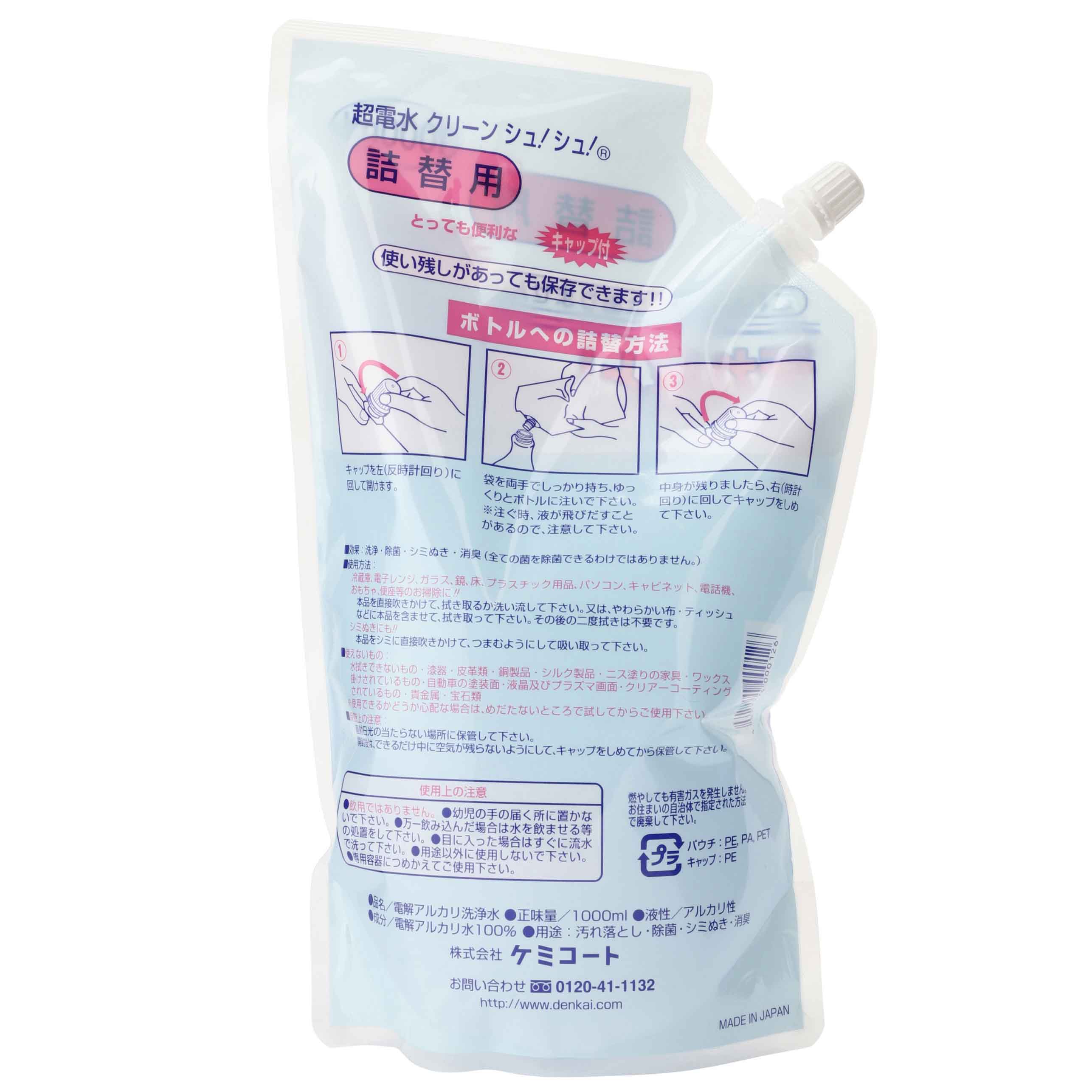 ✨Nước diệt khuẩn ion kiềm CLEAN SHU! SHU! Túi tiết kiệm 1000mL Làm sạch - Diệt khuẩn - Khử mùi bề mặt đồ gia dụng, nội thất ô tô từ Nhật Bản