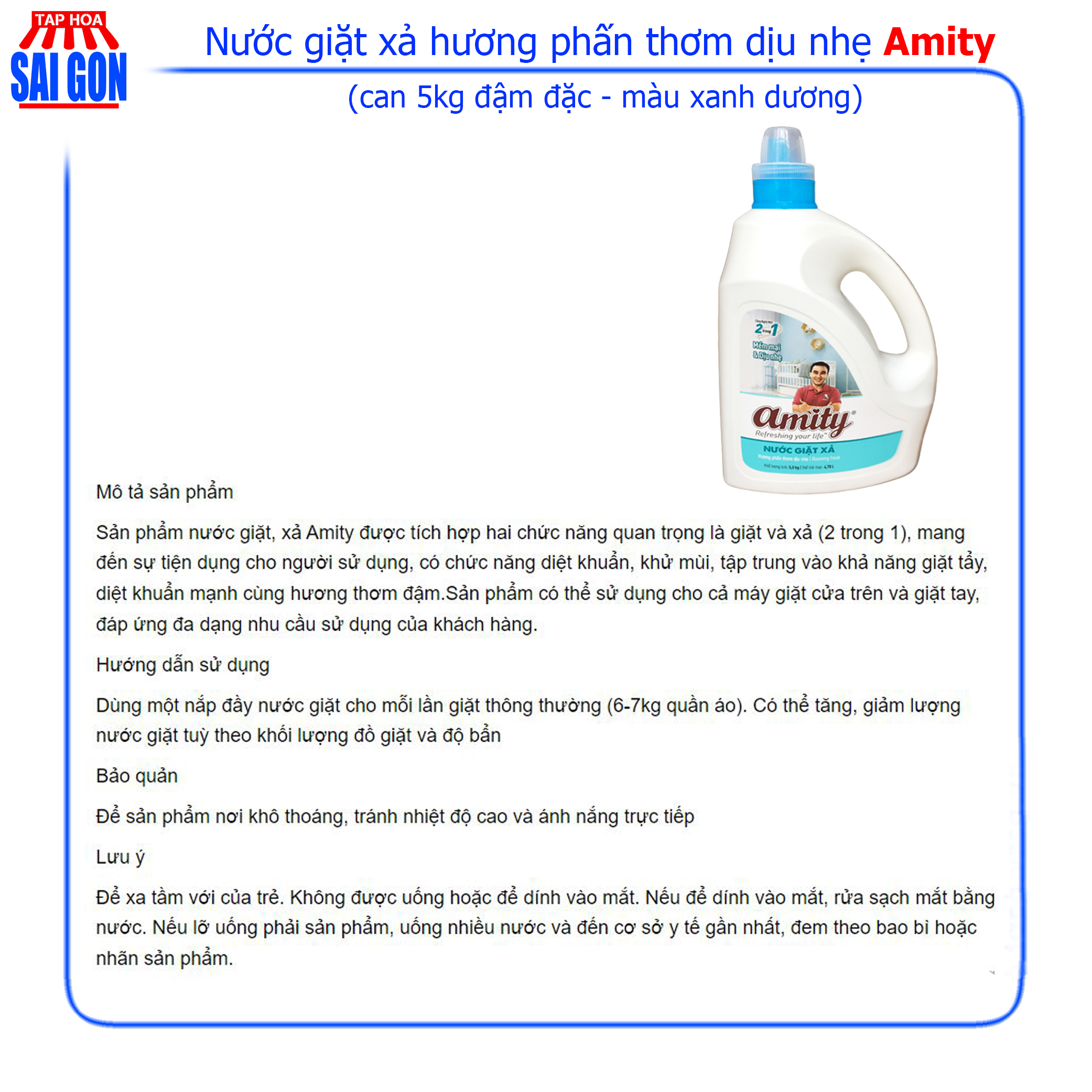 Nước Giặt Xả Amity hương phấm thơm dịu nhẹ (xanh dương) can 5kg giúp giữ mùi thơm nhẹ nhàng suốt cả ngày, một thương hiệu của MC Quyền Linh Với công nghệ tích hợp 2