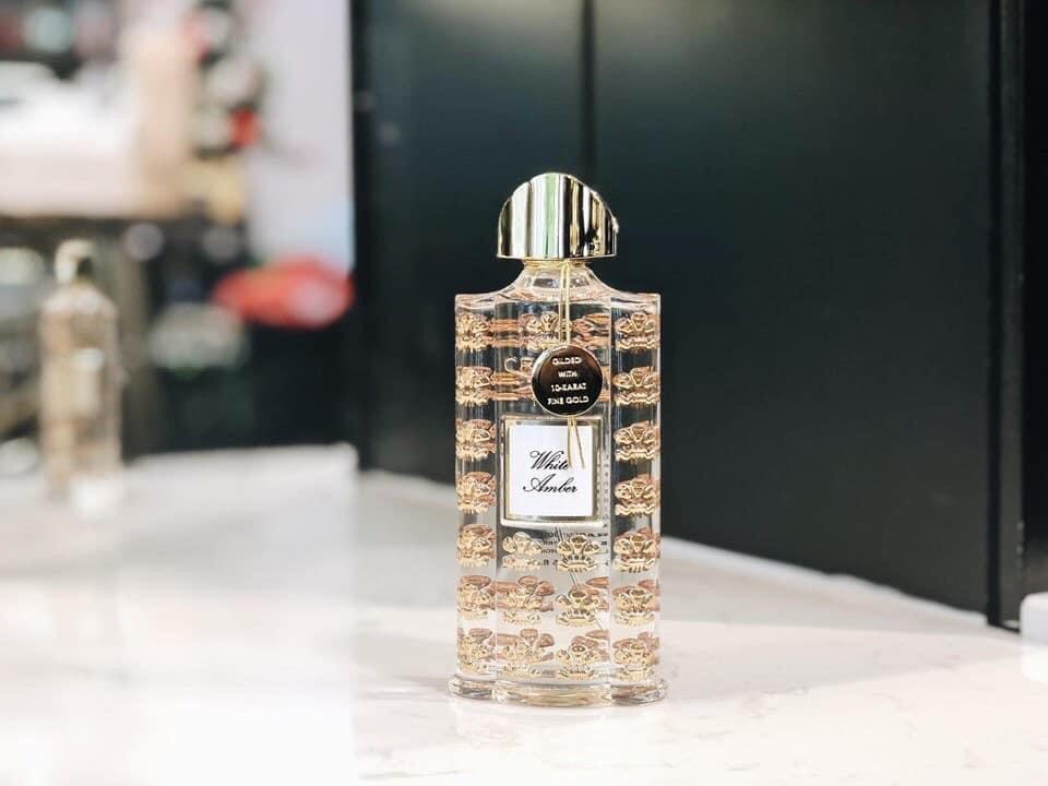 Nhóm nước hoa: Hương hoa cỏ phương đông Giới tính: Unisex (Nam Nữ đều dùng được) Năm ra mắt: 2017 Nồng độ: EDP Nhà pha chế: Olivier Creed Độ lưu hương: Tạm ổn – 3 giờ đến 6 giờ Phong Cách: Tinh Tế, Sang Trọng, Thu Hút Hương đầu: Trái cây Hương giữa: Hoa nhài, An tức hương Hương cuối: Hổ phách, Gỗ đàn hương. Creed White Amber là mẫu nước hoa trong bộ sưu tập ‘Royal Exclusives’ của thương hiệu Creed, được tạo ra nhân dịp kỷ niệm 250 thành lập thương hiệu. Creed White Amber với phong cách tự do phóng khoáng trần đầy năng lượng qua sự kết hợp vô cùng khéo léo giữa trái cây và hương hoa. Creed White Amber là chai nước hoa được xem là đắt giá và rất đáng tiền của nhà hương CREED. Được mạ vàng 10K óng ánh quanh chai cực kì đẳng cấp!     Creed White Amber long lanh như một lọ thủy tinh pha lê được chạm khắc thủ công tinh tế đầy thu hút, White Amber mở đầu với hương thơm thanh mát của trái cây (đào và bưởi). Nốt hương giữa là sự hòa trộn tinh tế của hoa nhài tươi sáng và vani sang trọng, mùi hương dần trở nên ấm áp đầy lôi cuốn với hổ phách và gỗ đàn hương ở hương cuối. Creed White Amber để lại dấu ấn với hoa nhài chủ đạo trên nền hổ phách tinh tế nhẹ nhàng đầy thu hút.